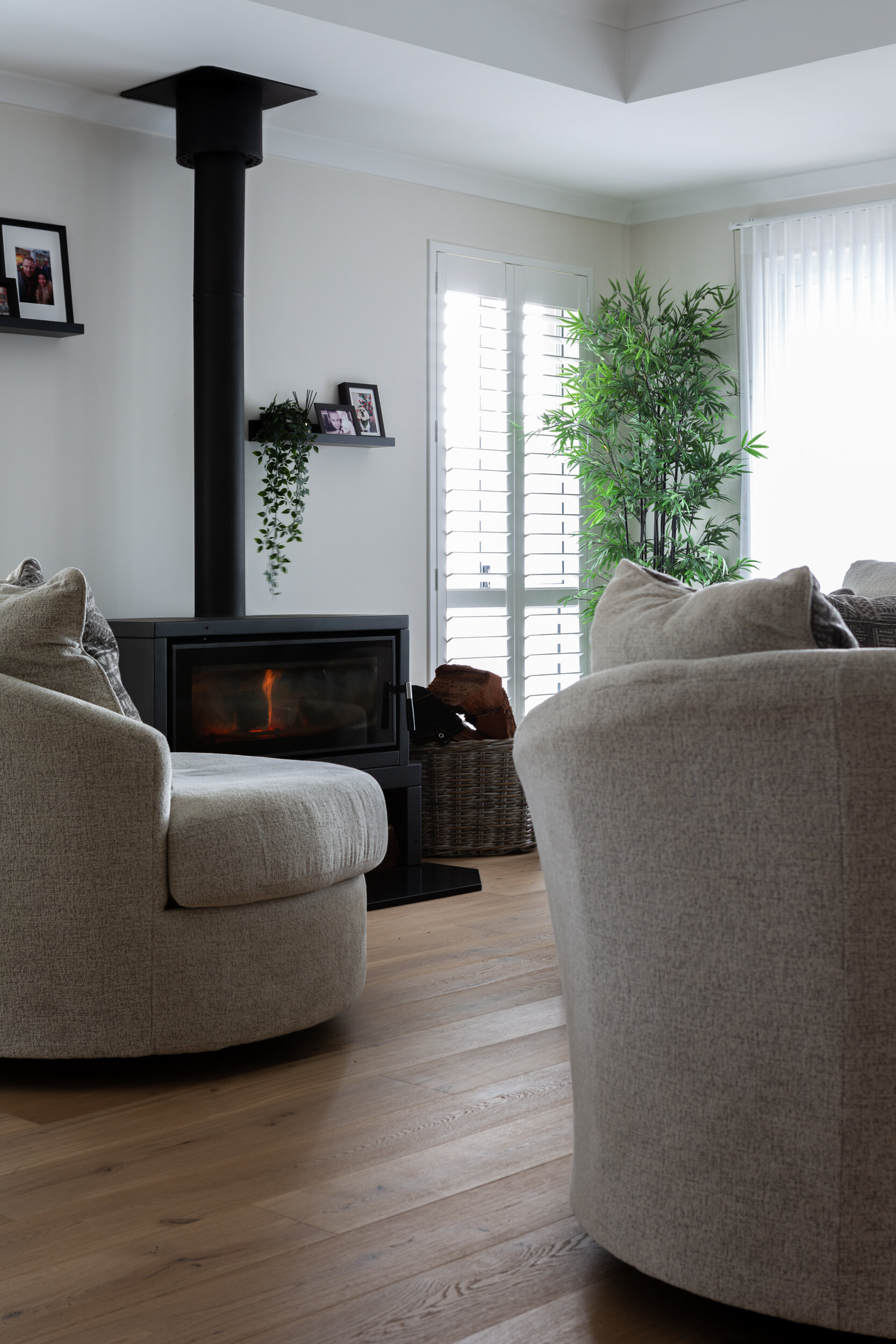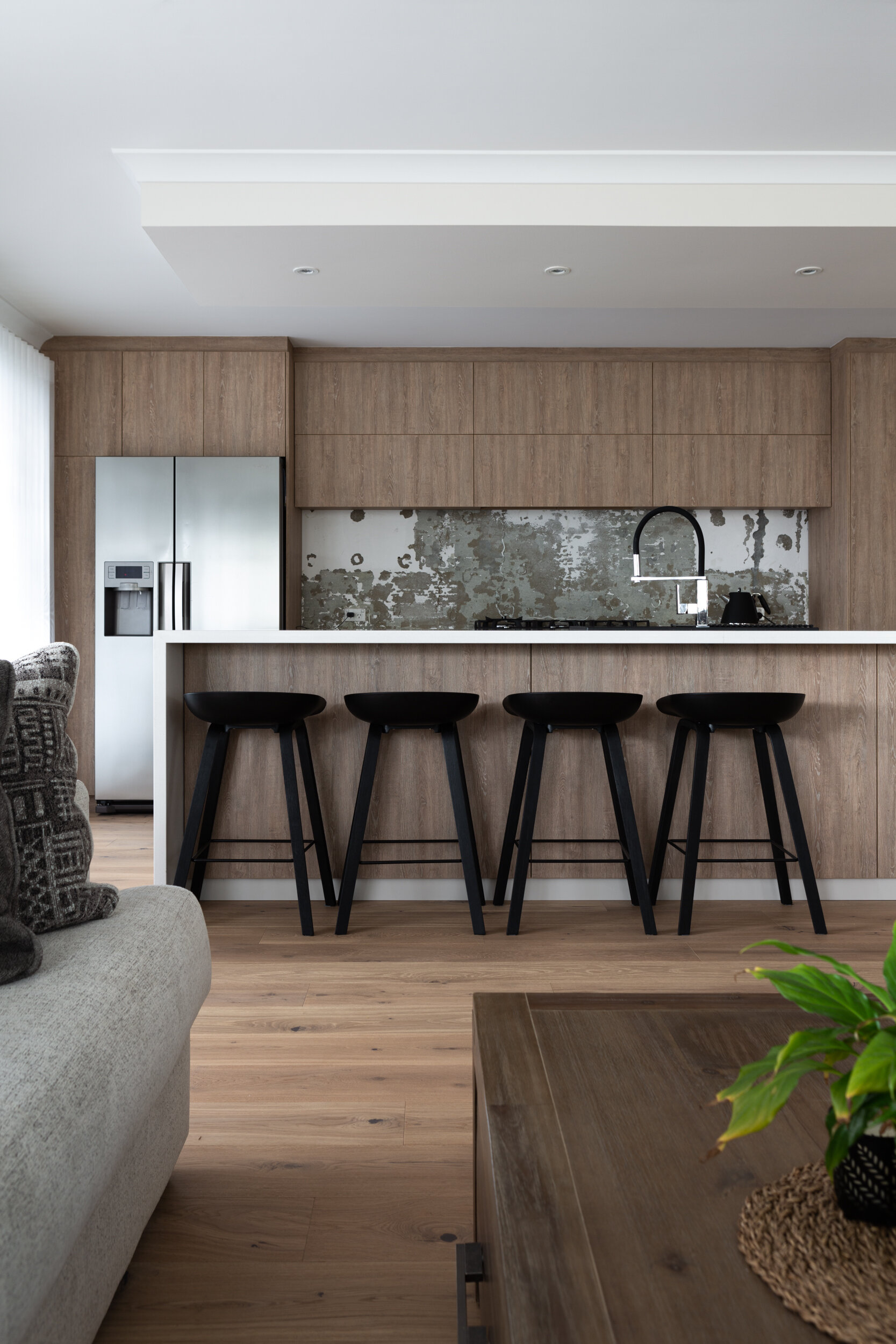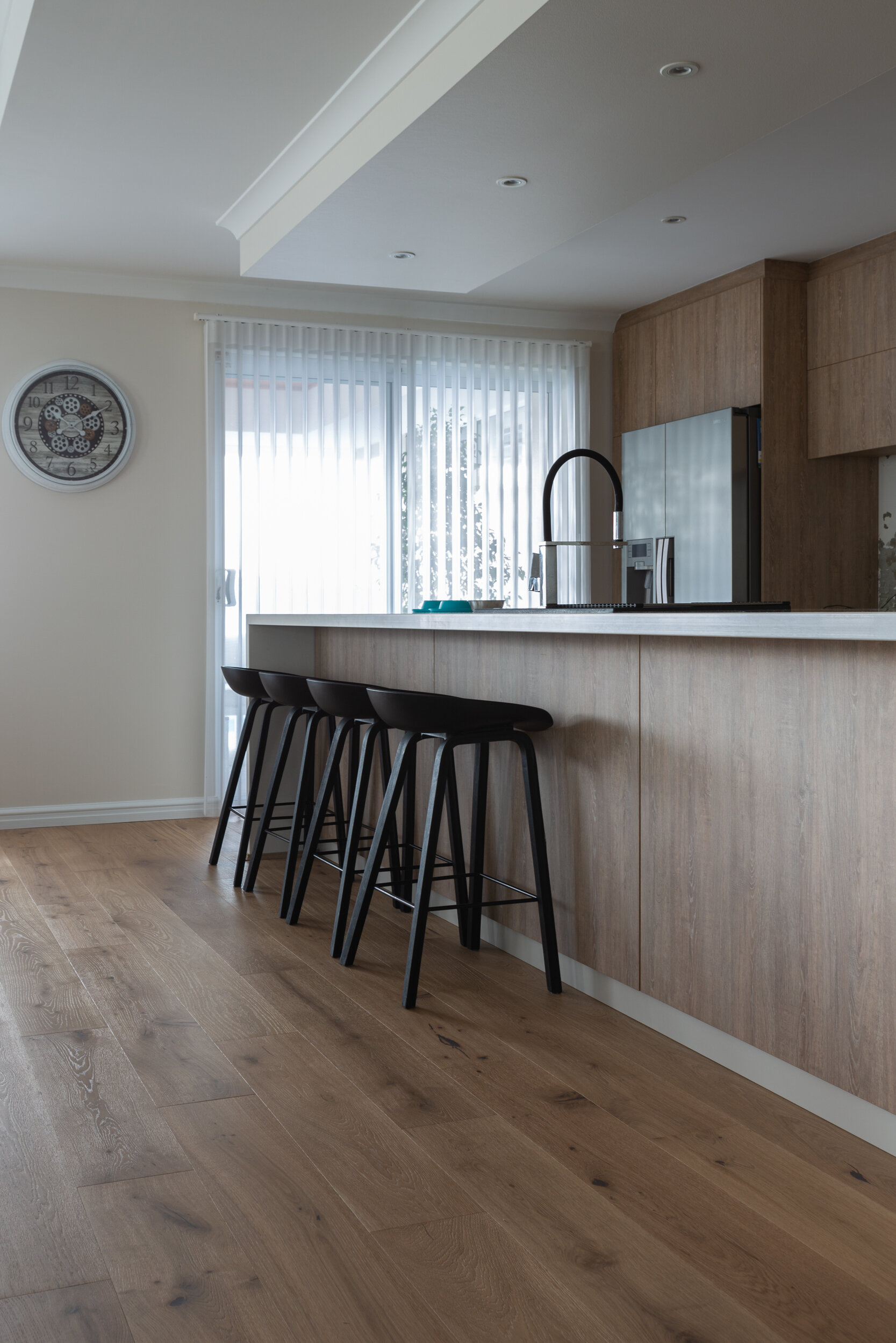 Elegant warm latte hues accentuate the distinctive texture of Batiste oak flooring in this Baldivis home.