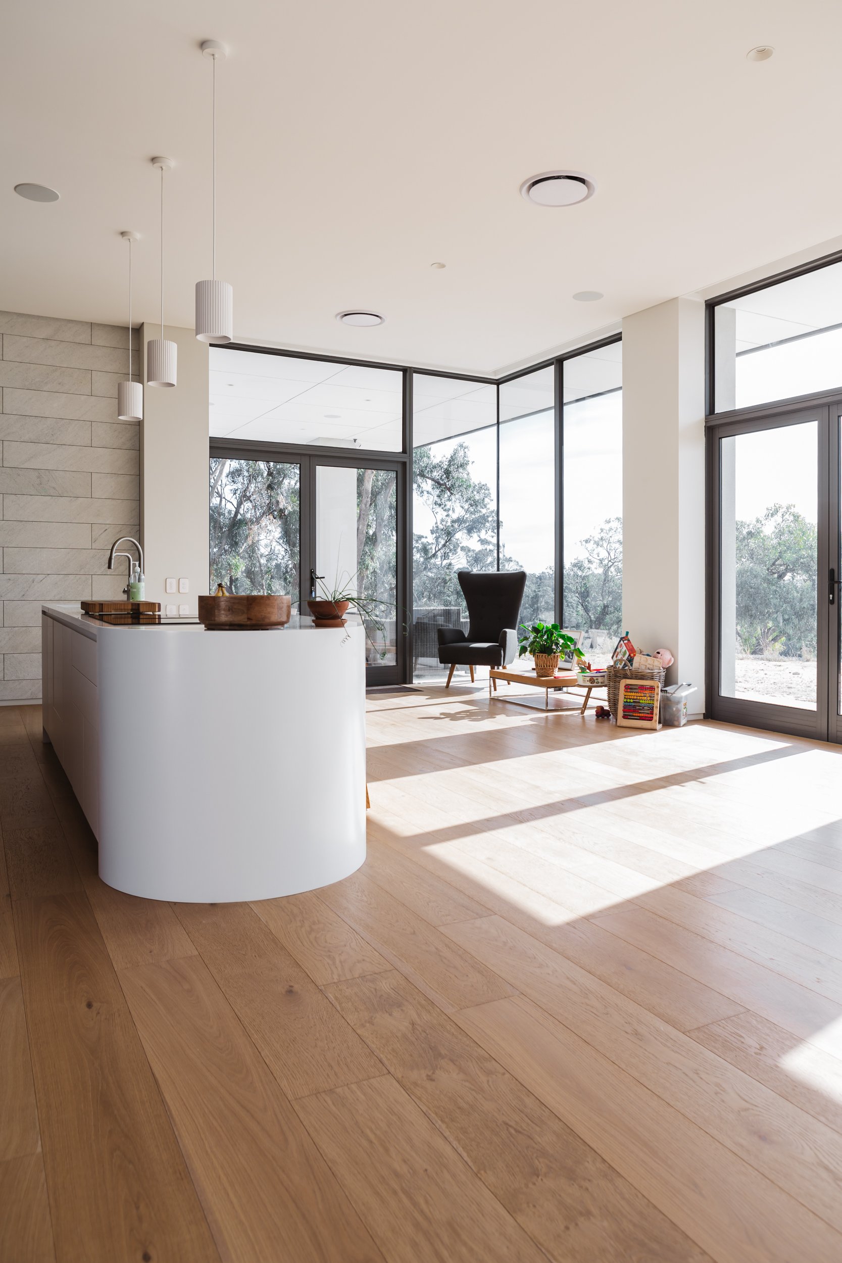 Timeless engineered oak flooring adds an elegant modern touch to this rural residence.