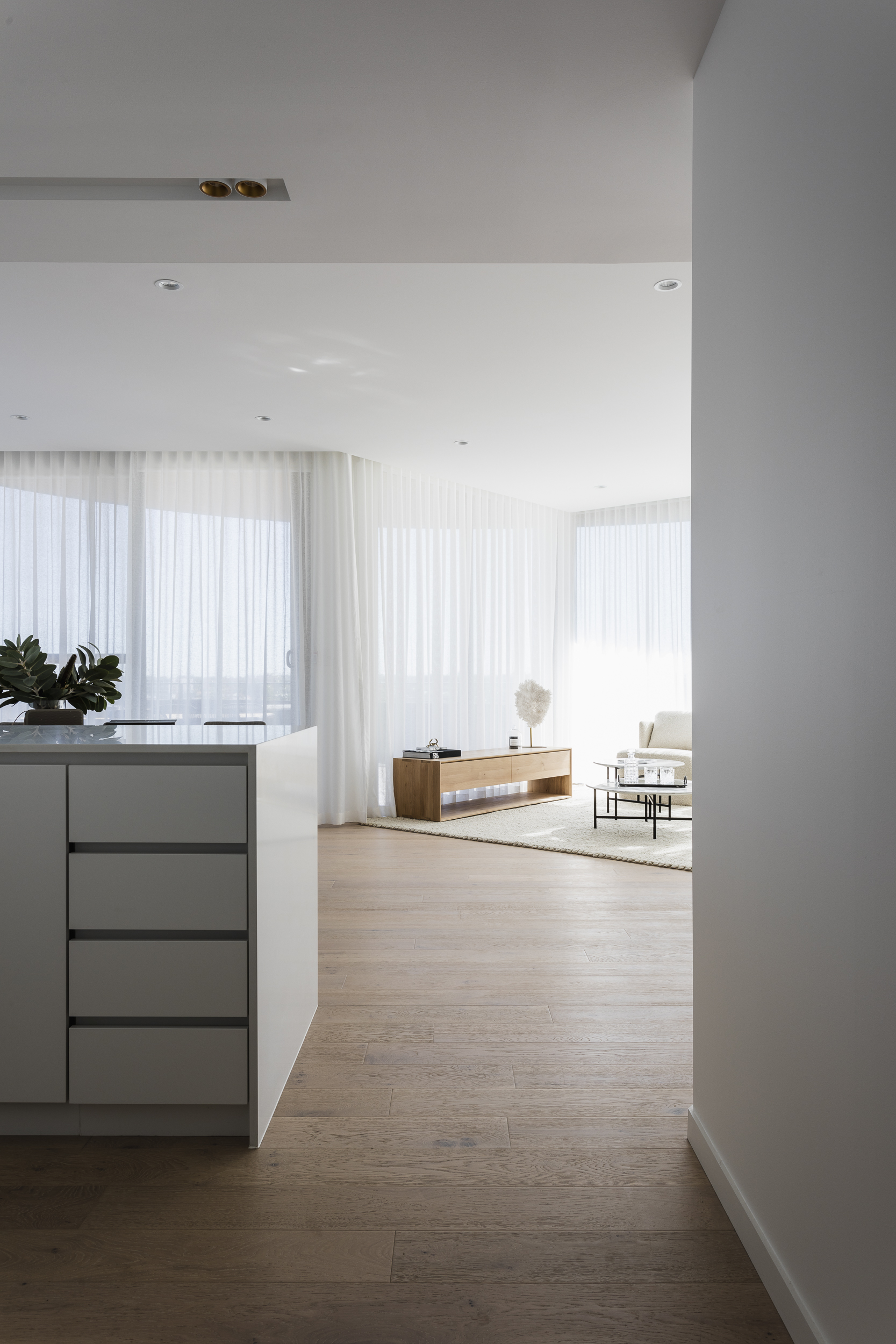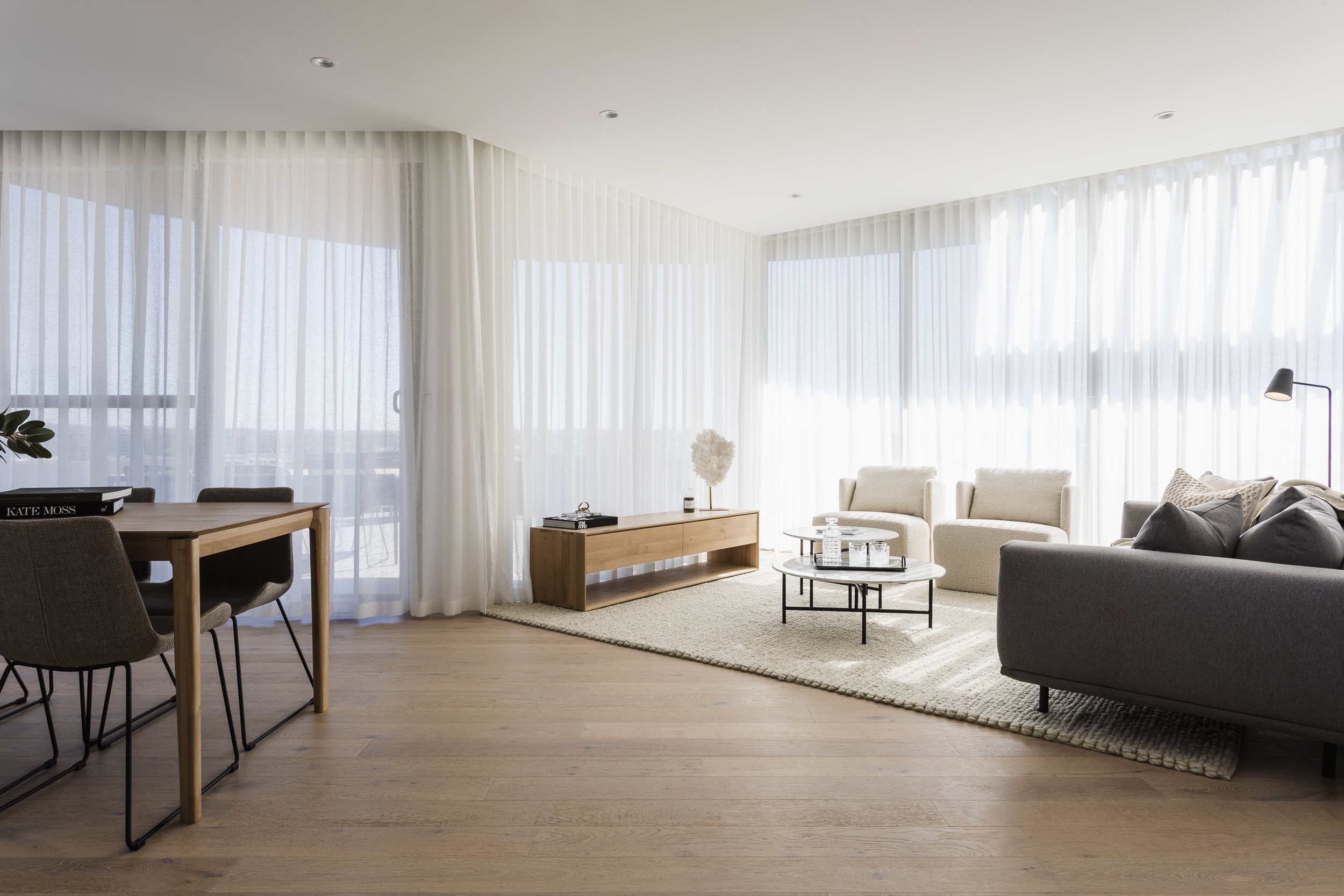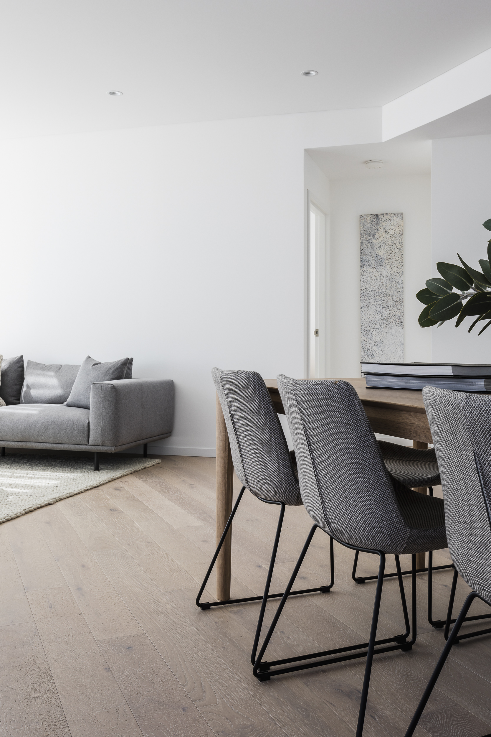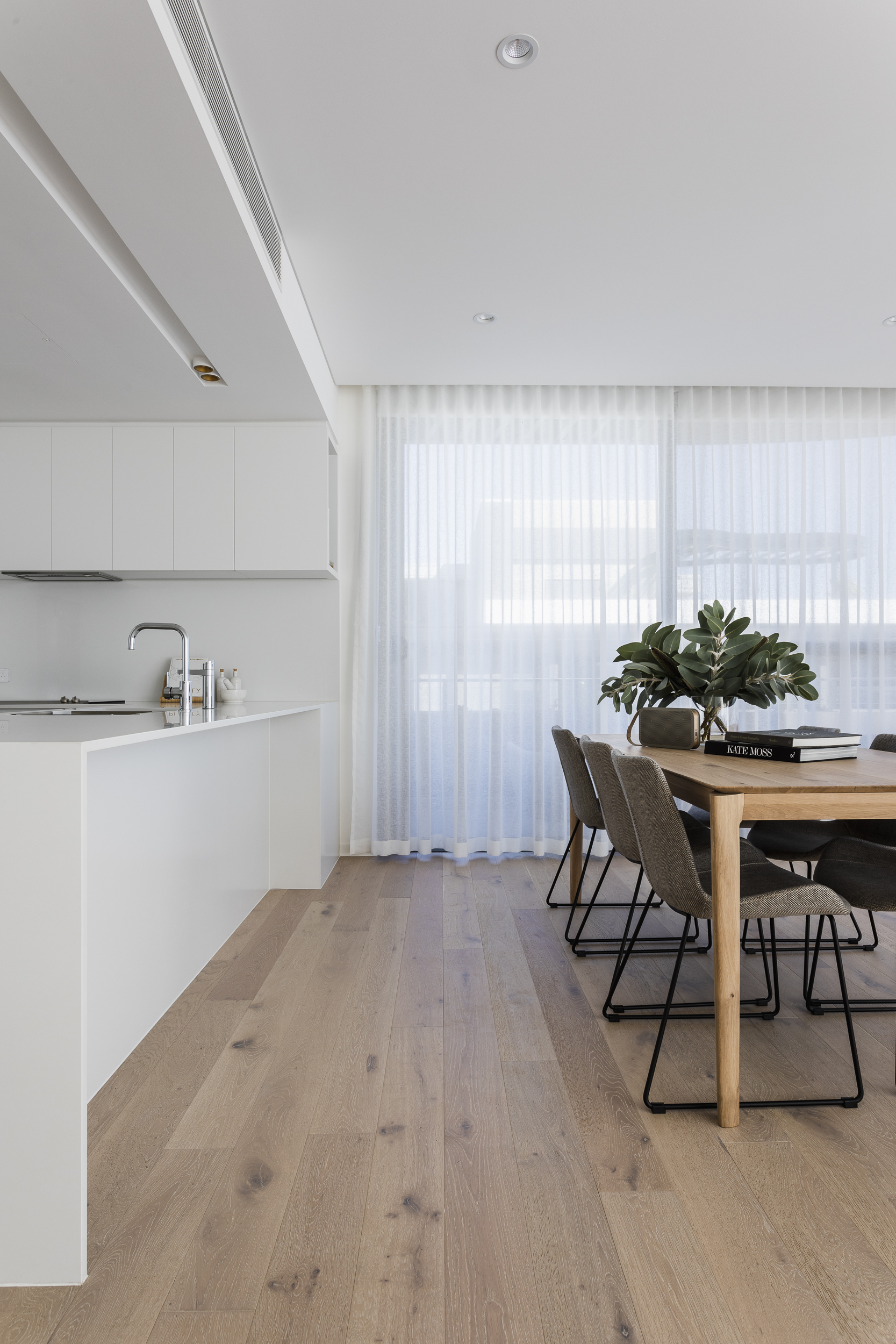 Botanical in Subiaco offers sustainable design that bathes in light and luxury. The combination of soft materials and a serene colour palette in the apartments fosters a peaceful and inviting atmosphere, ideal for relaxation and comfort. Flooring used is a made to order Signature Oak in the colour Antique Whitewash.