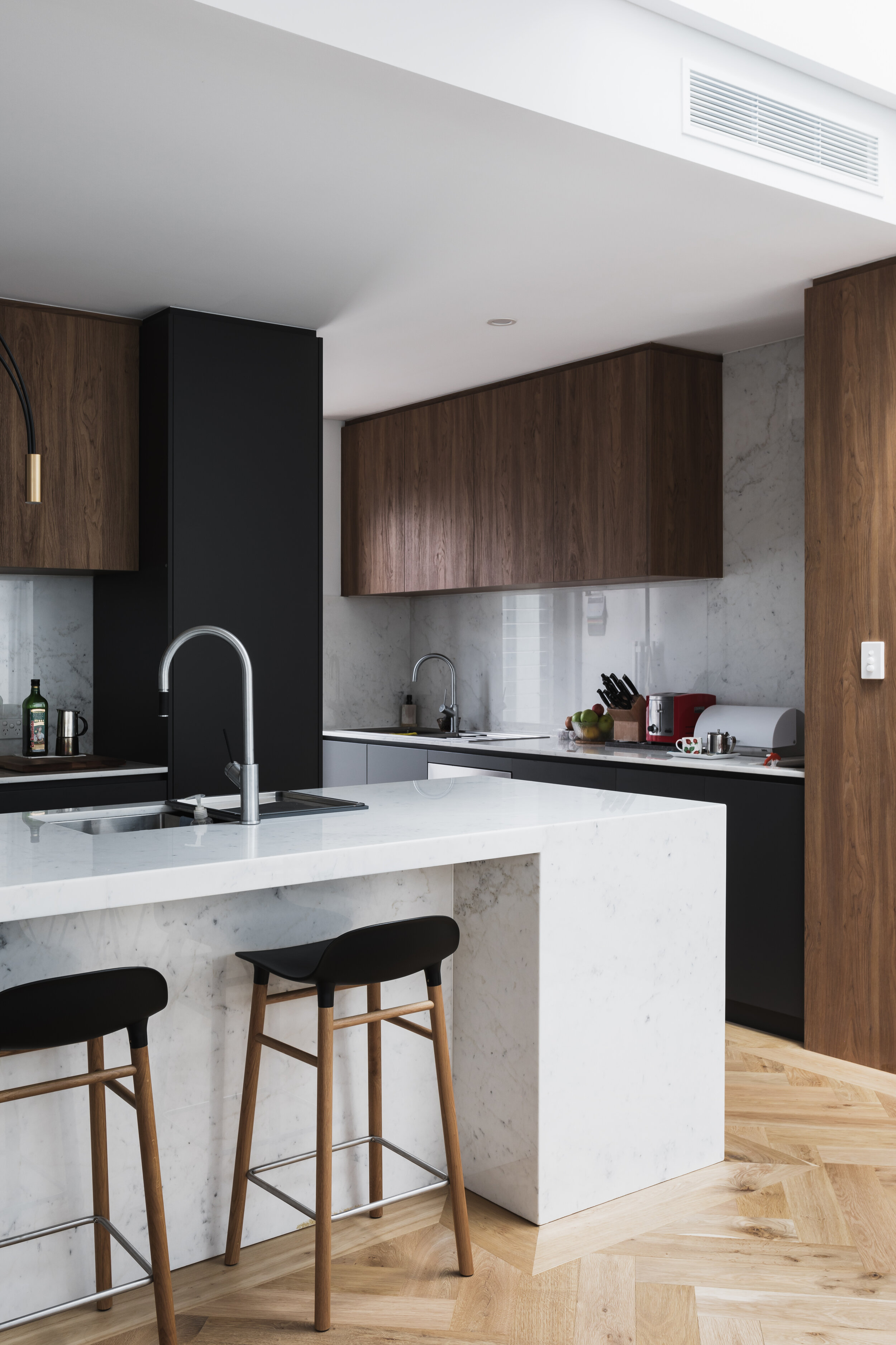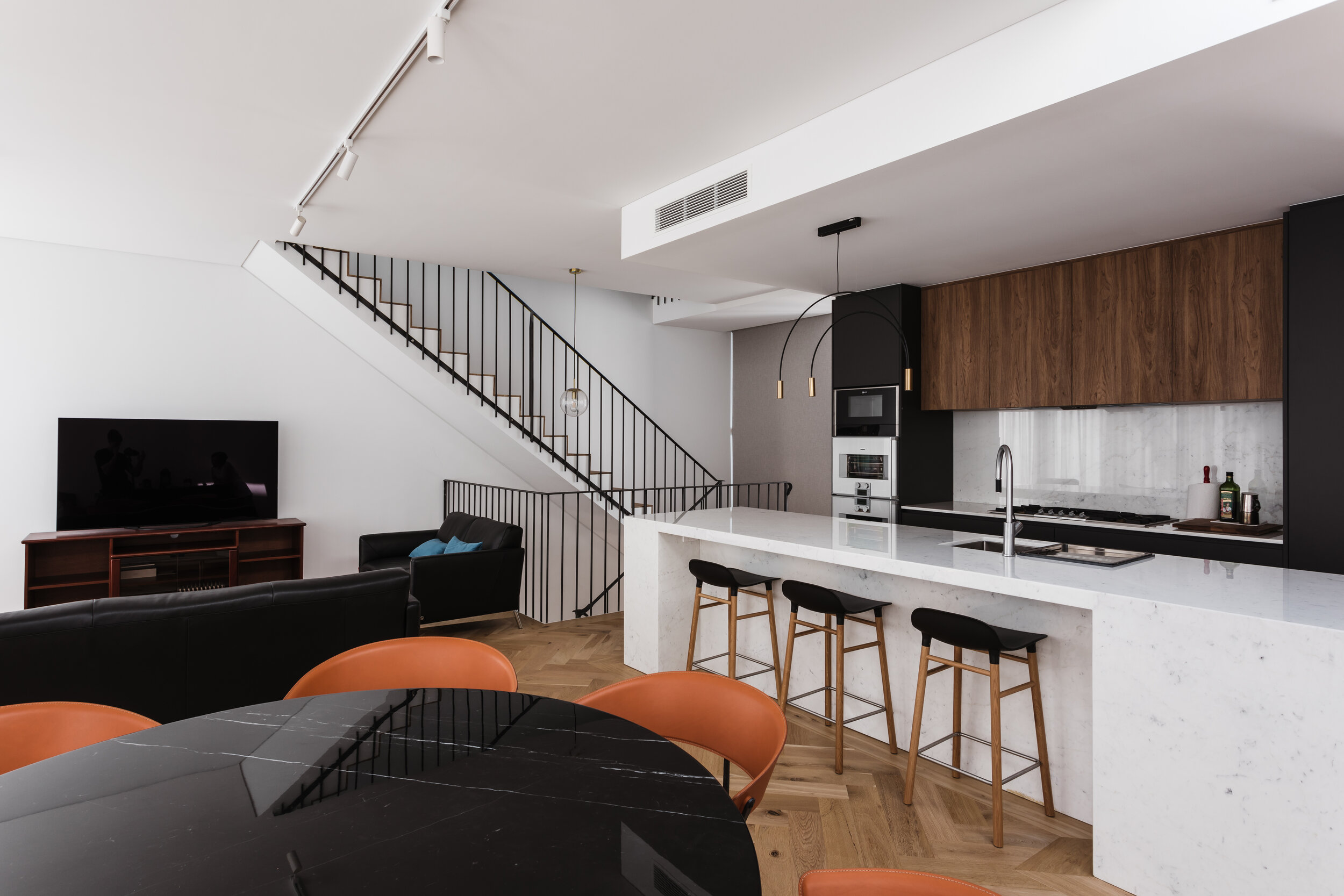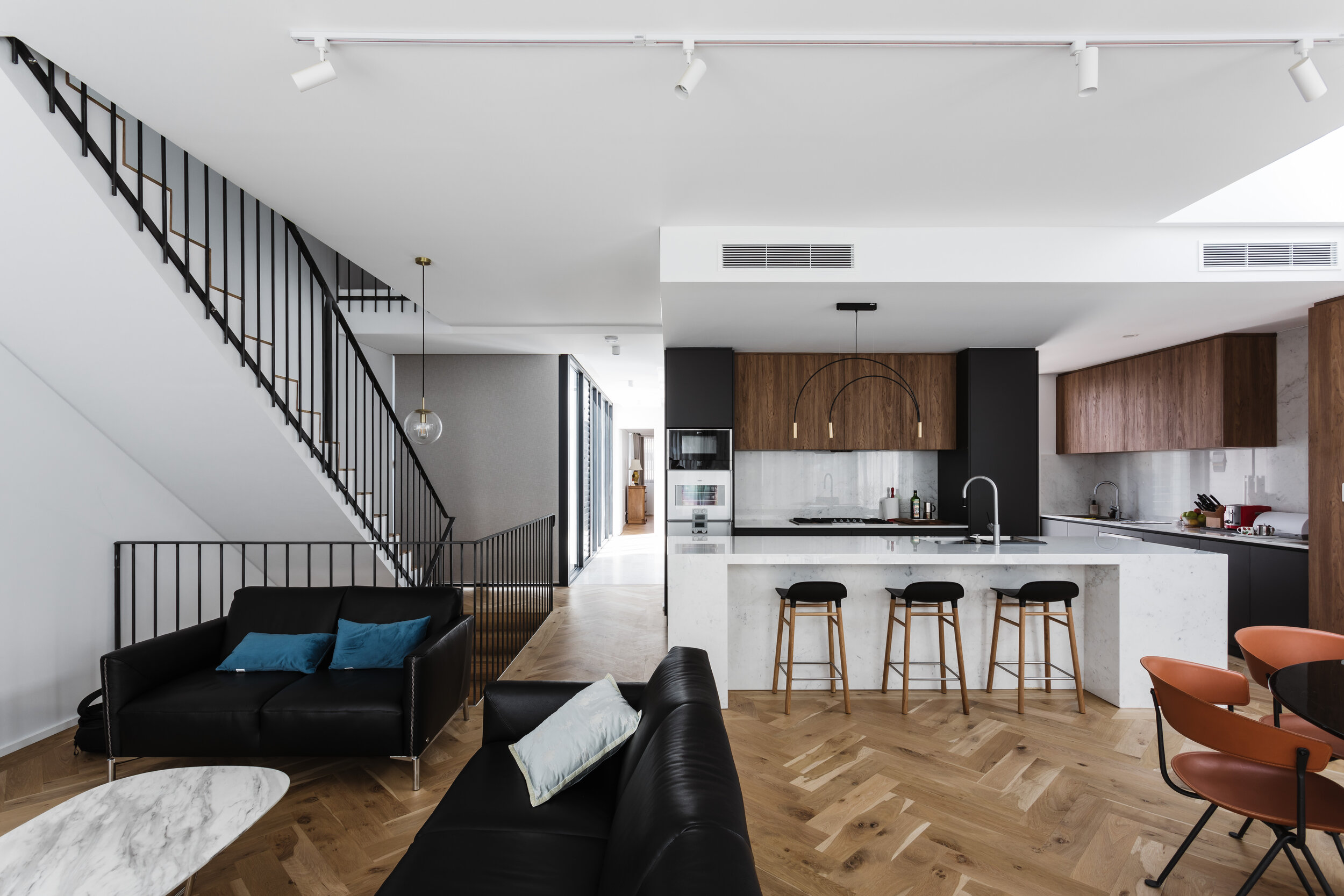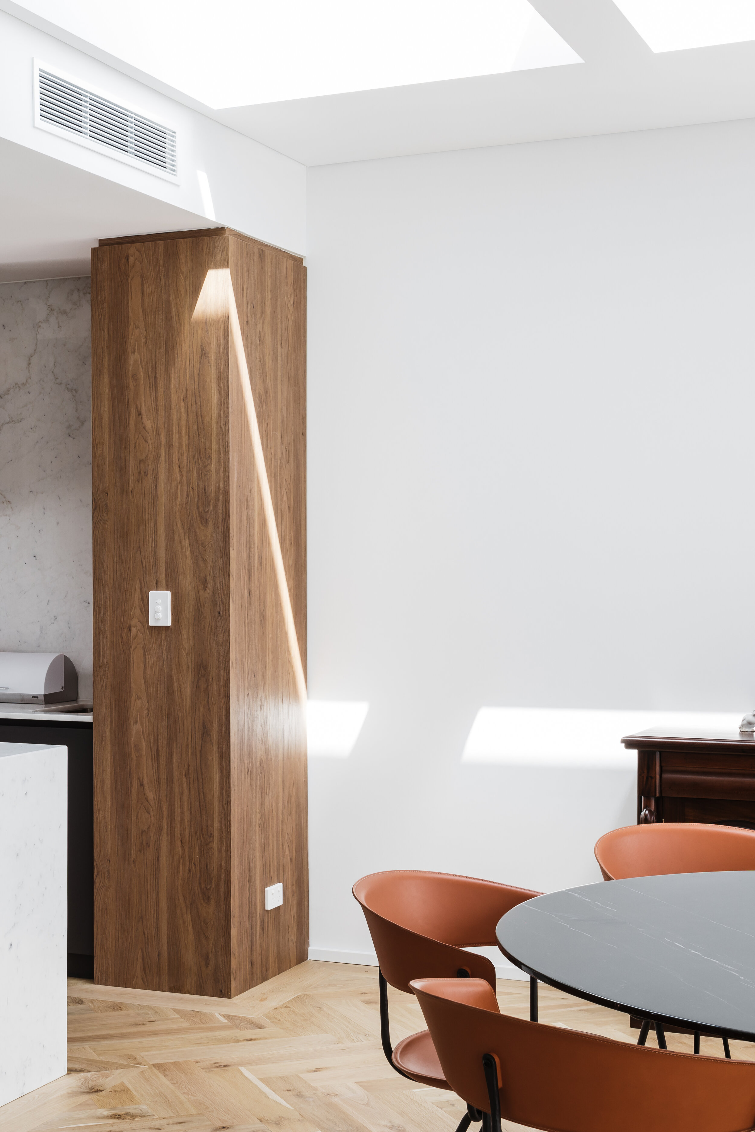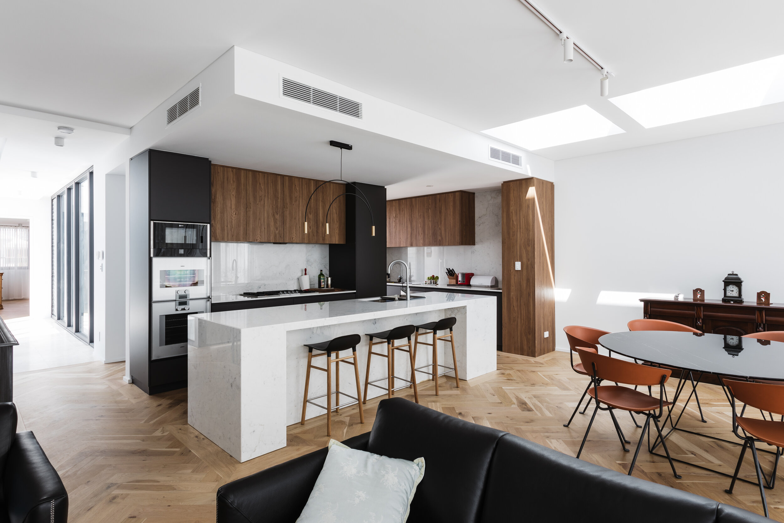 Nestled in a quiet suburban area next to a lovely park that preserves old-growth native trees, this Churchlands home offers a peaceful setting that blends harmoniously with nature. Solid Oak herringbone flooring used throughout the main living spaces enhances the overall aesthetic, inviting movement and energy into the room while effortlessly elevating the ambiance.