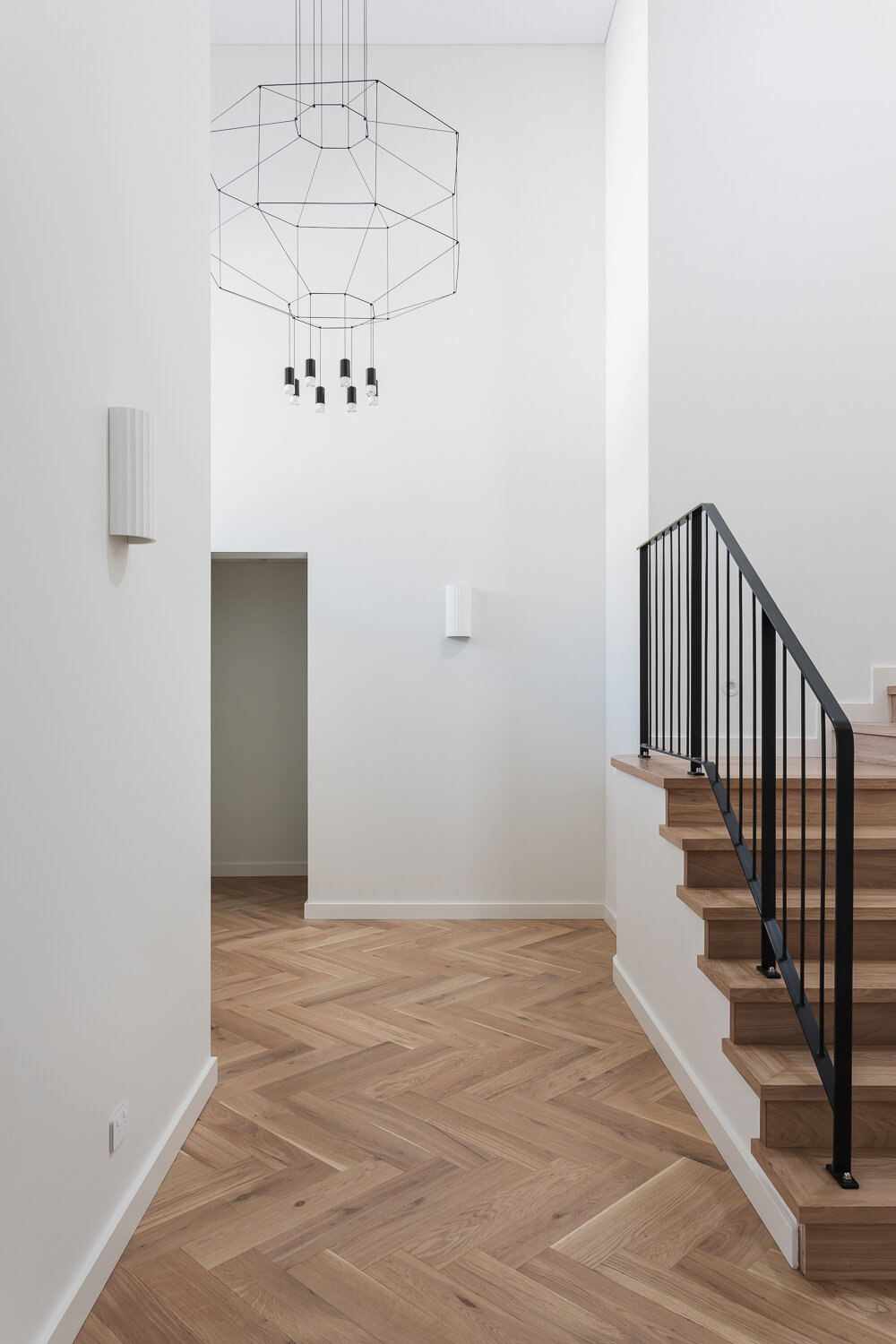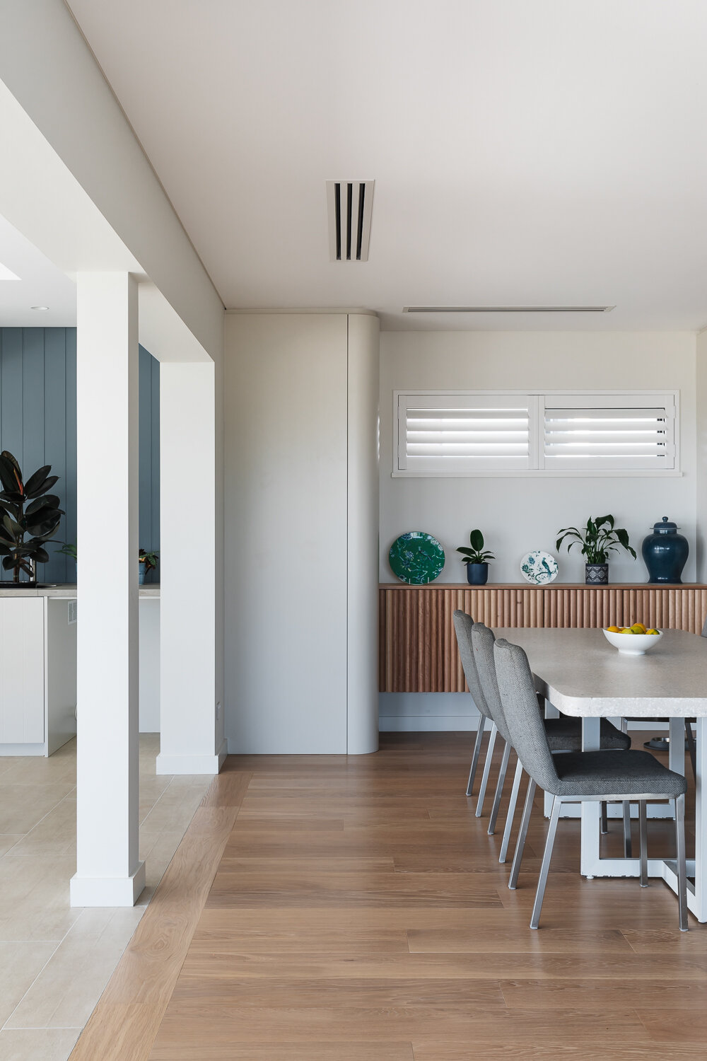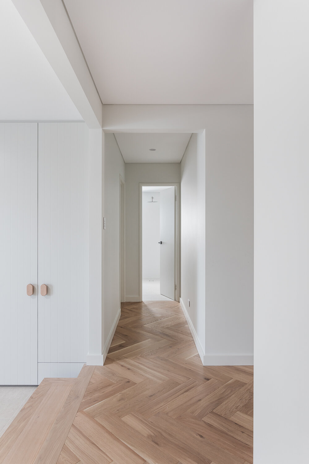 Ginger floorboards are used throughout this City Beach home, with a mix of plank and Herringbone flooring creating a visually stunning impact.