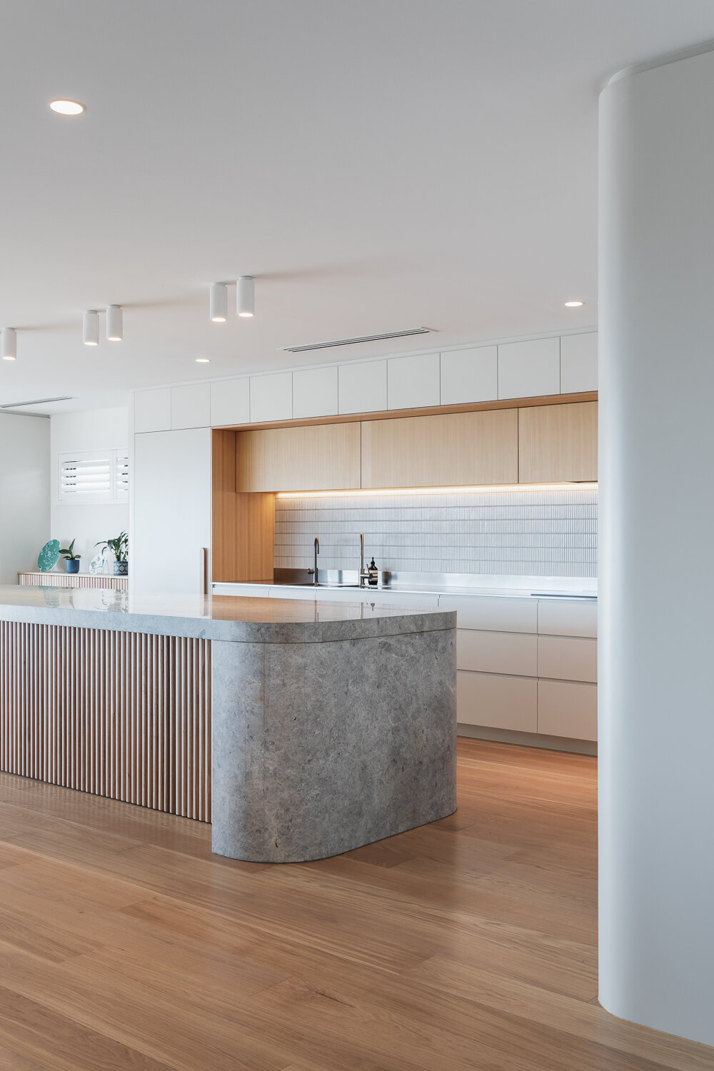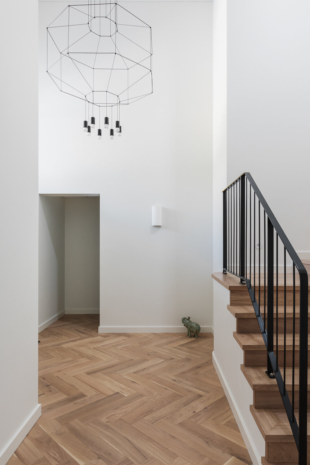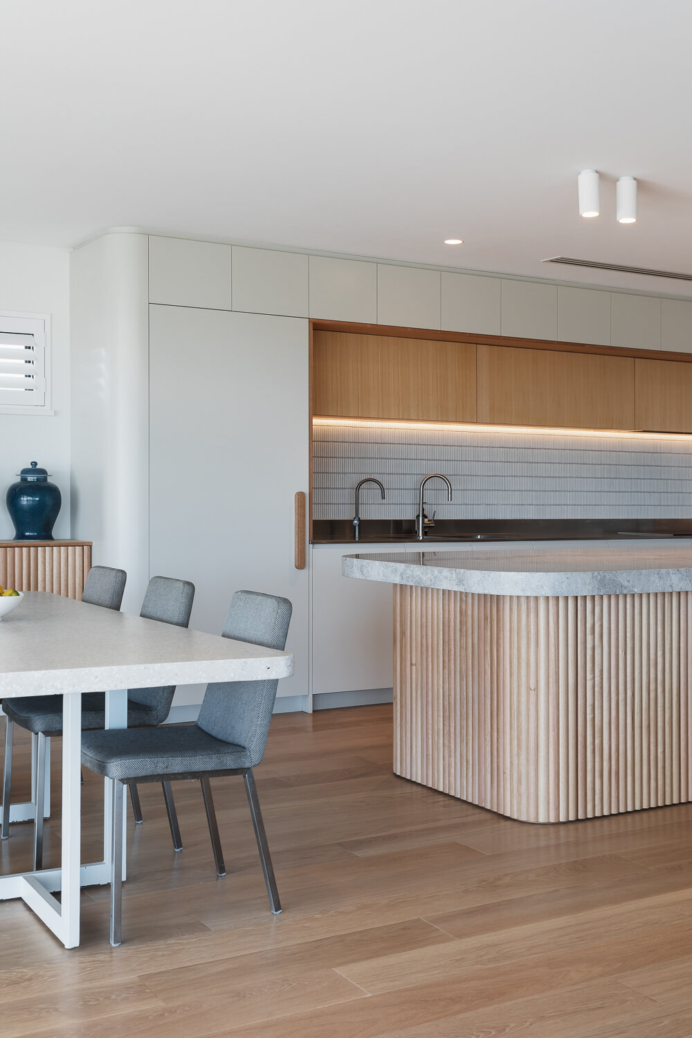Ginger floorboards are used throughout this City Beach home, with a mix of plank and Herringbone flooring creating a visually stunning impact.