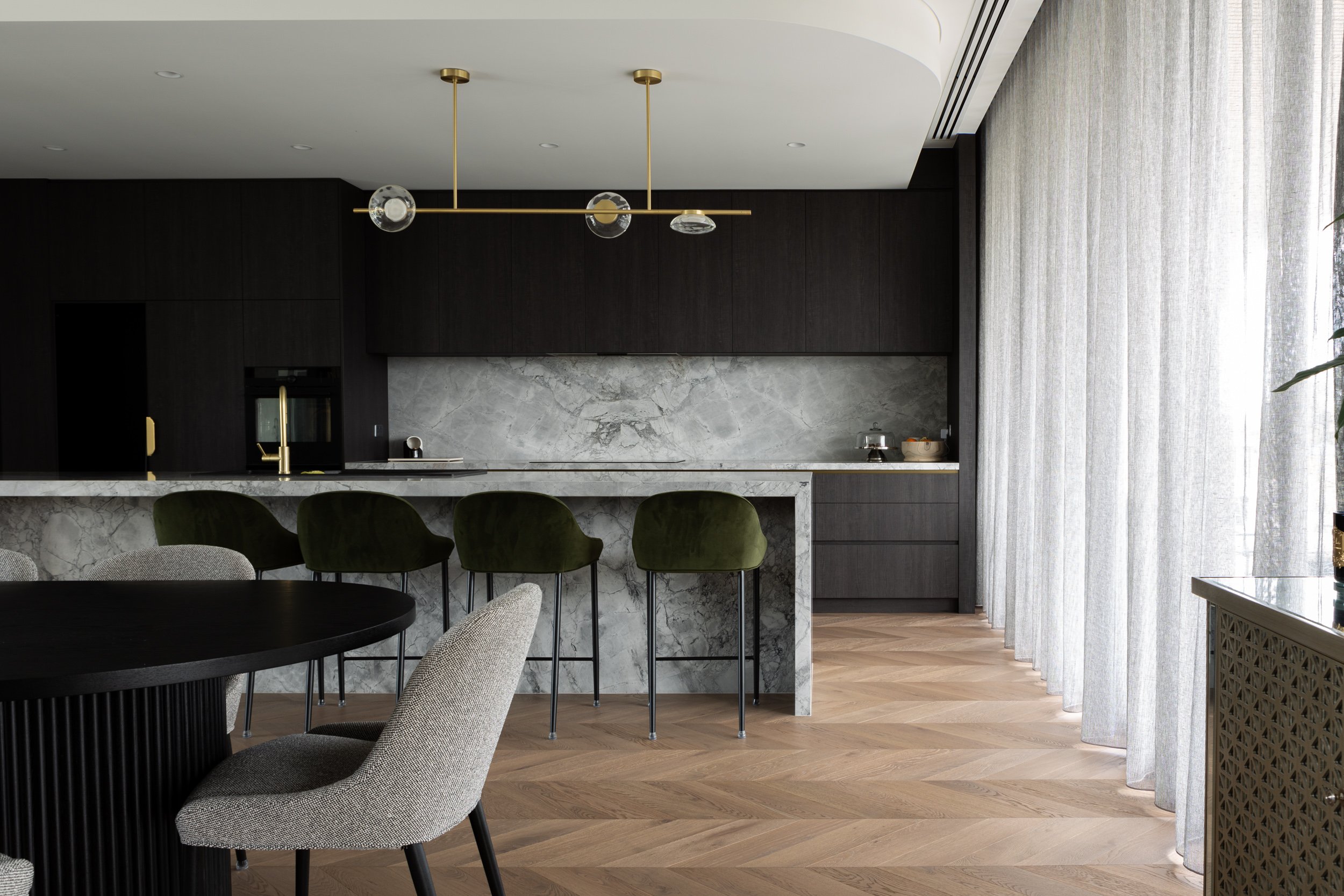 The interiors are clean and minimalistic, while the warmth from the Pastel oak floorboards, make the house feel homely for the owner's young family, the French Bulldog, Prince.