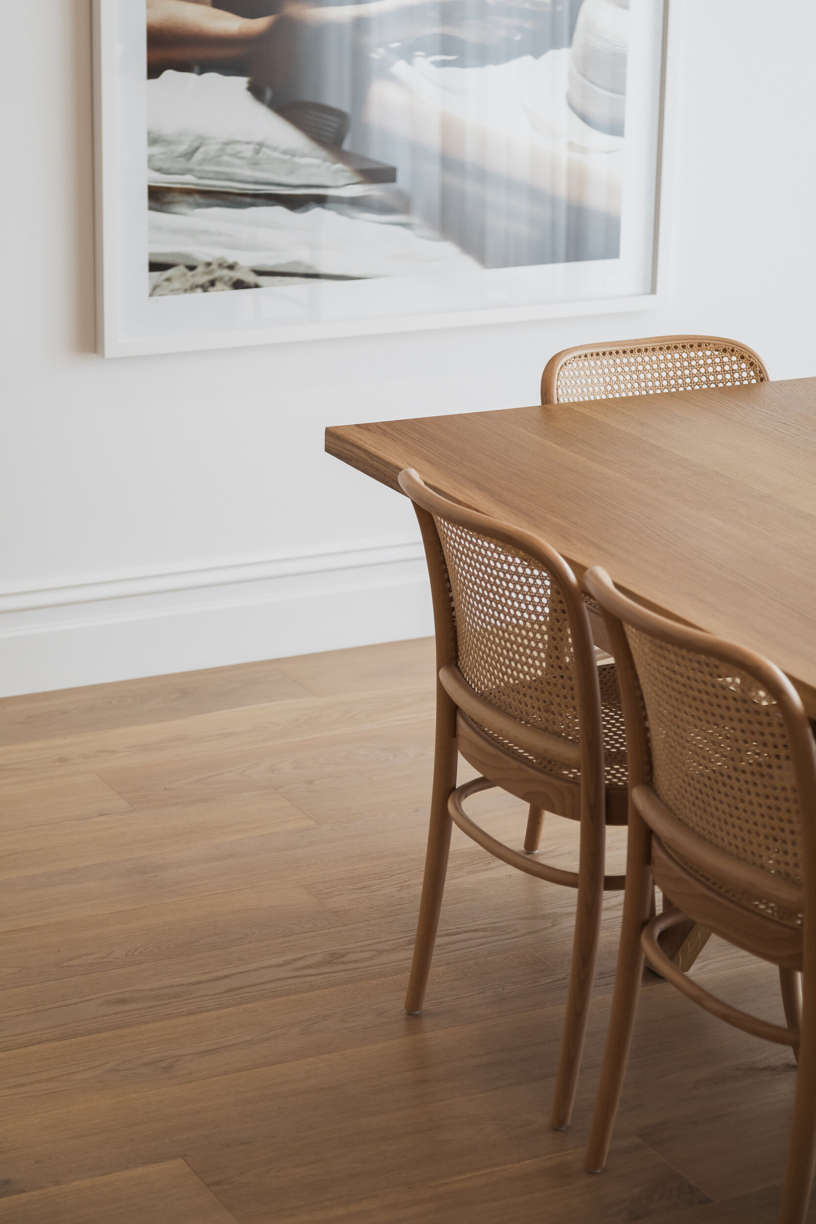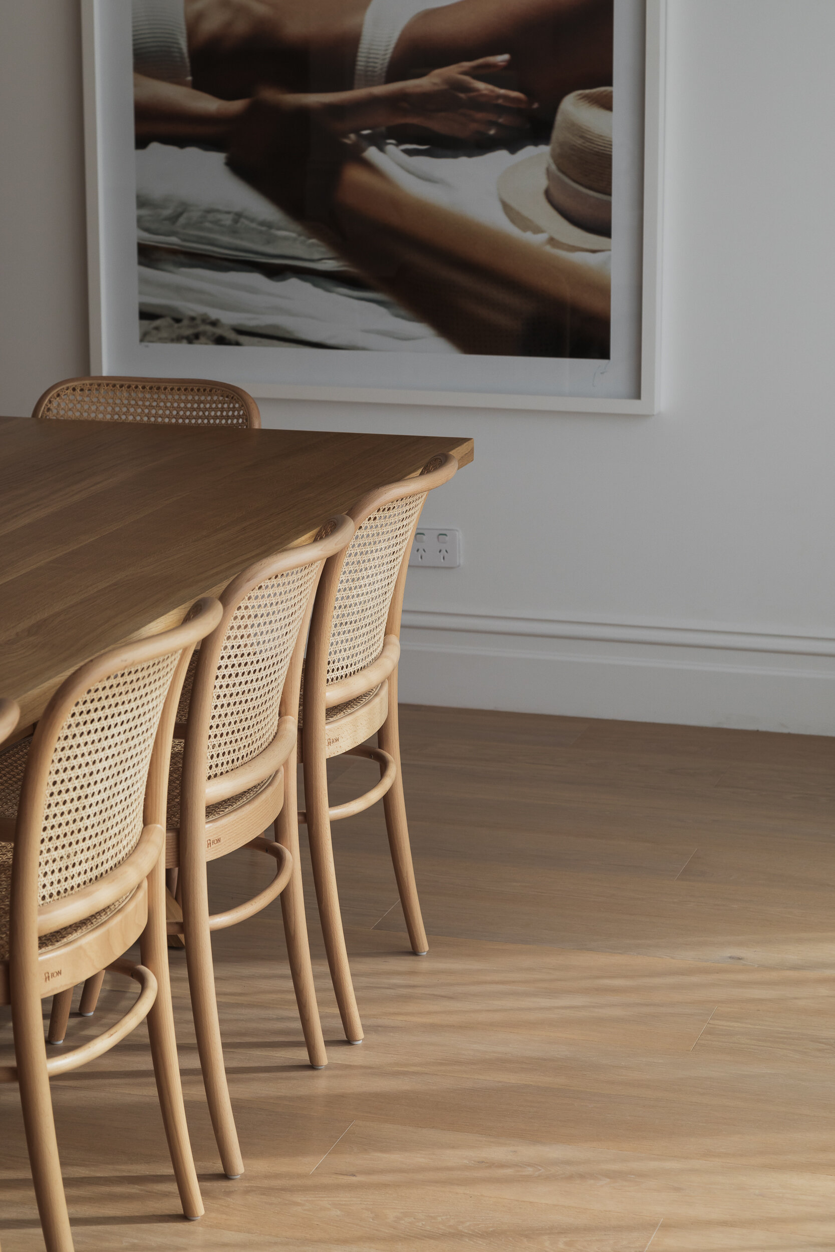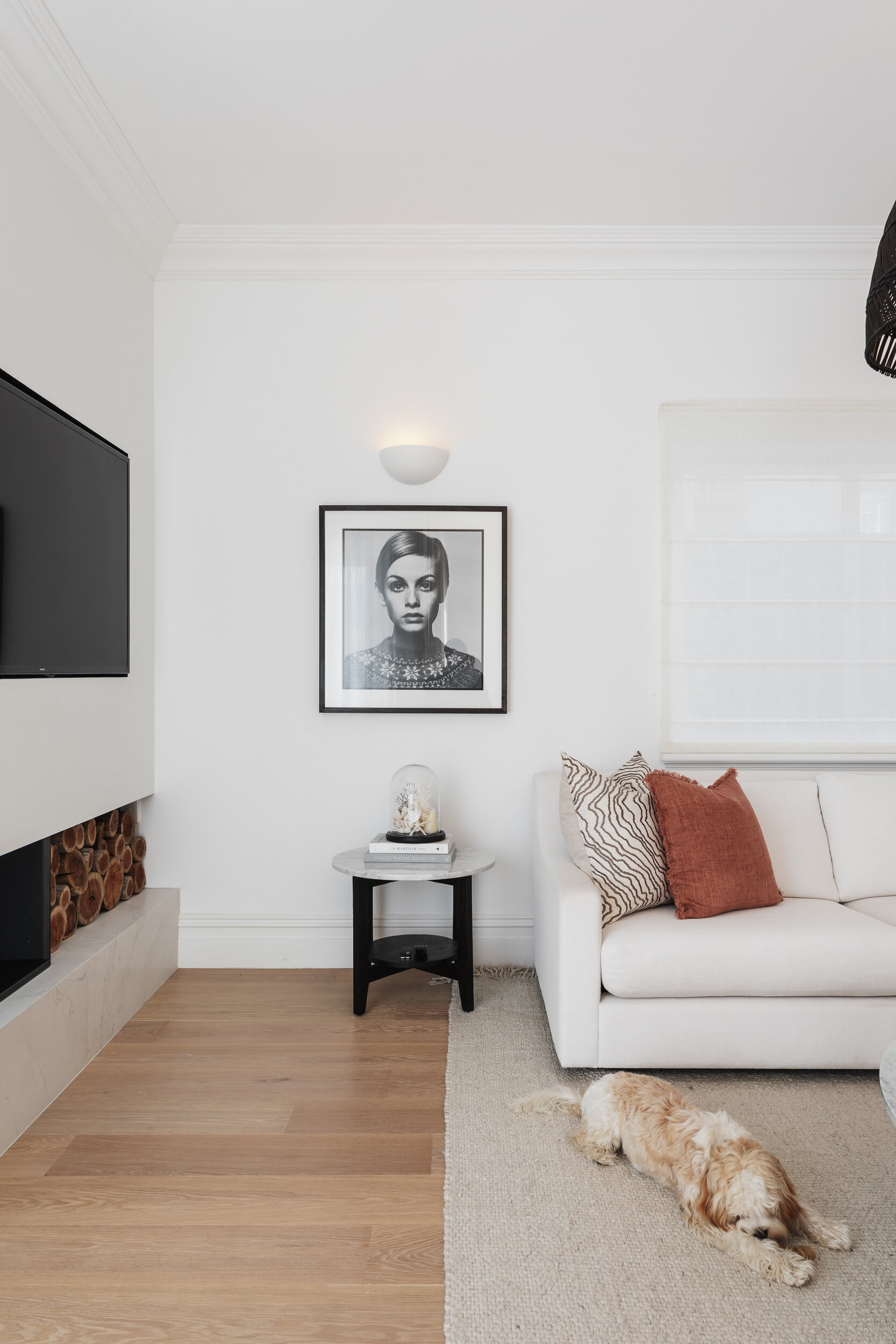 Featuring beautiful Ginger engineered oak flooring, this Cottesloe home exudes warmth and sophistication, enhanced by large windows that invite natural light. The interior is thoughtfully curated with a mix of modern and vintage elements, creating an inviting atmosphere that reflects a unique character.