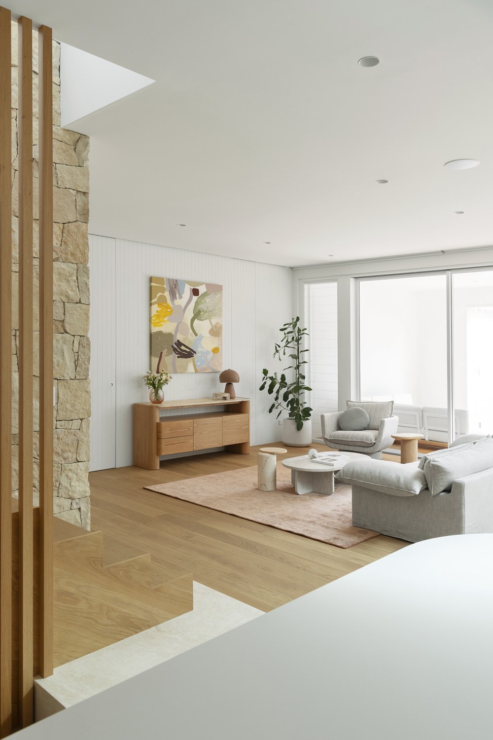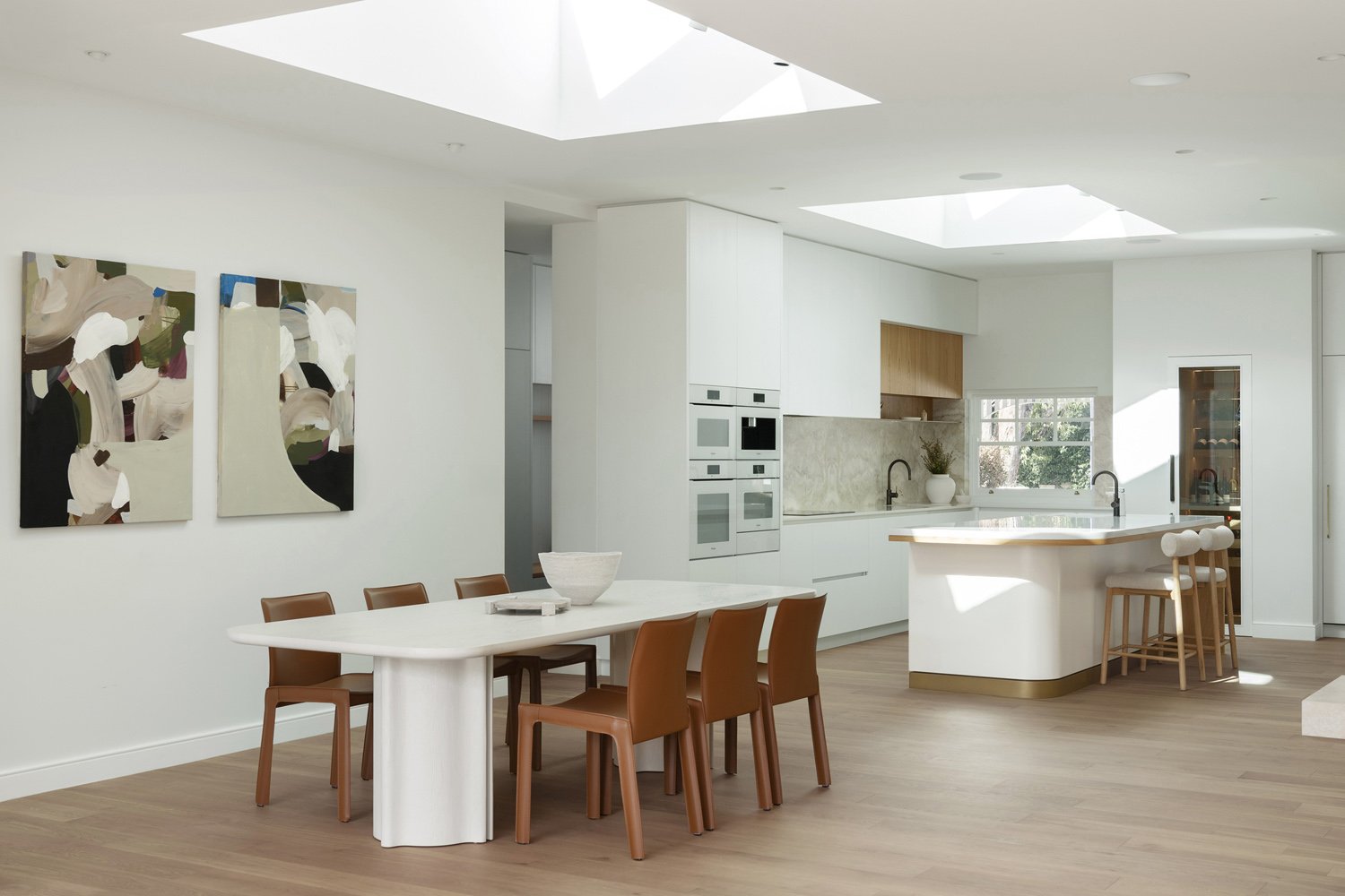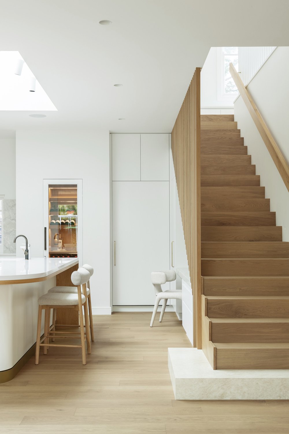 Light filled spaces and clean lines create an airy atmosphere, grounded with oak flooring in a vibrant yet early tone.