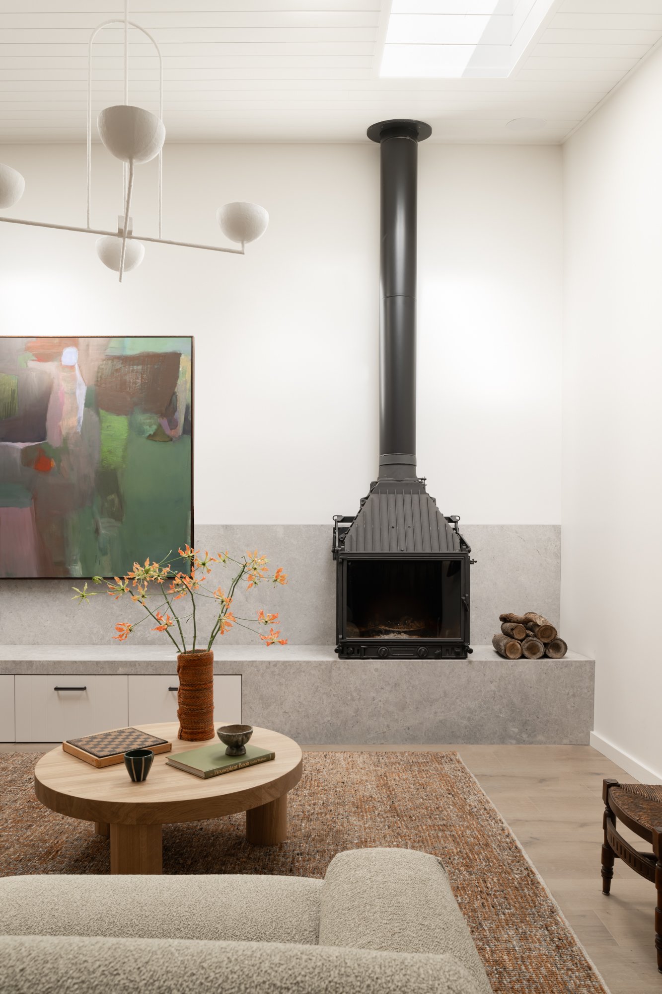 The 'Olive Homestead' project in Eagle Bay embodies a rustic yet modern charm, seamlessly blending with its natural surroundings. The design features a warm color palette and natural materials, including timber and stone, creating a welcoming atmosphere.