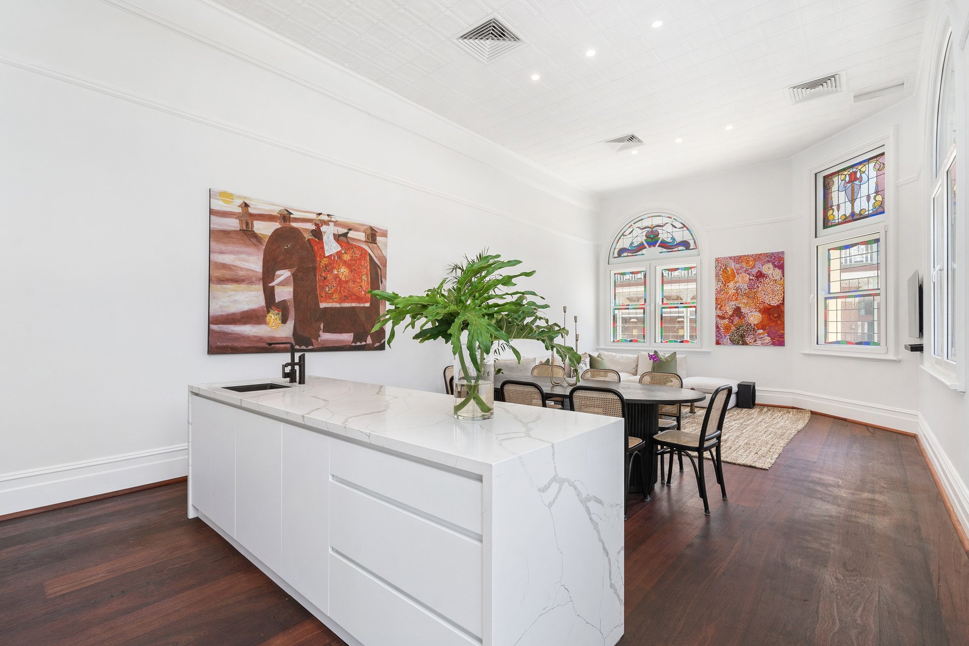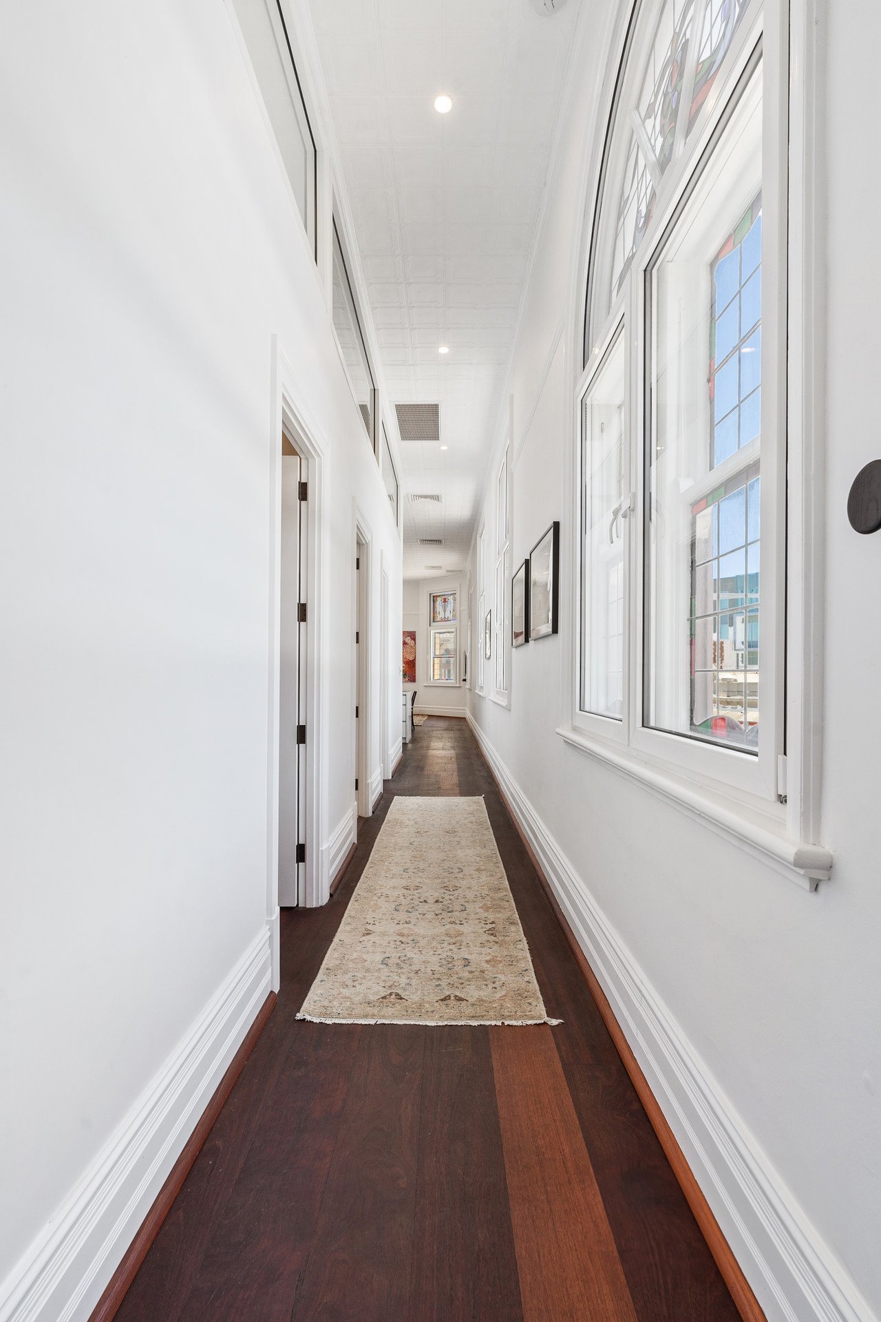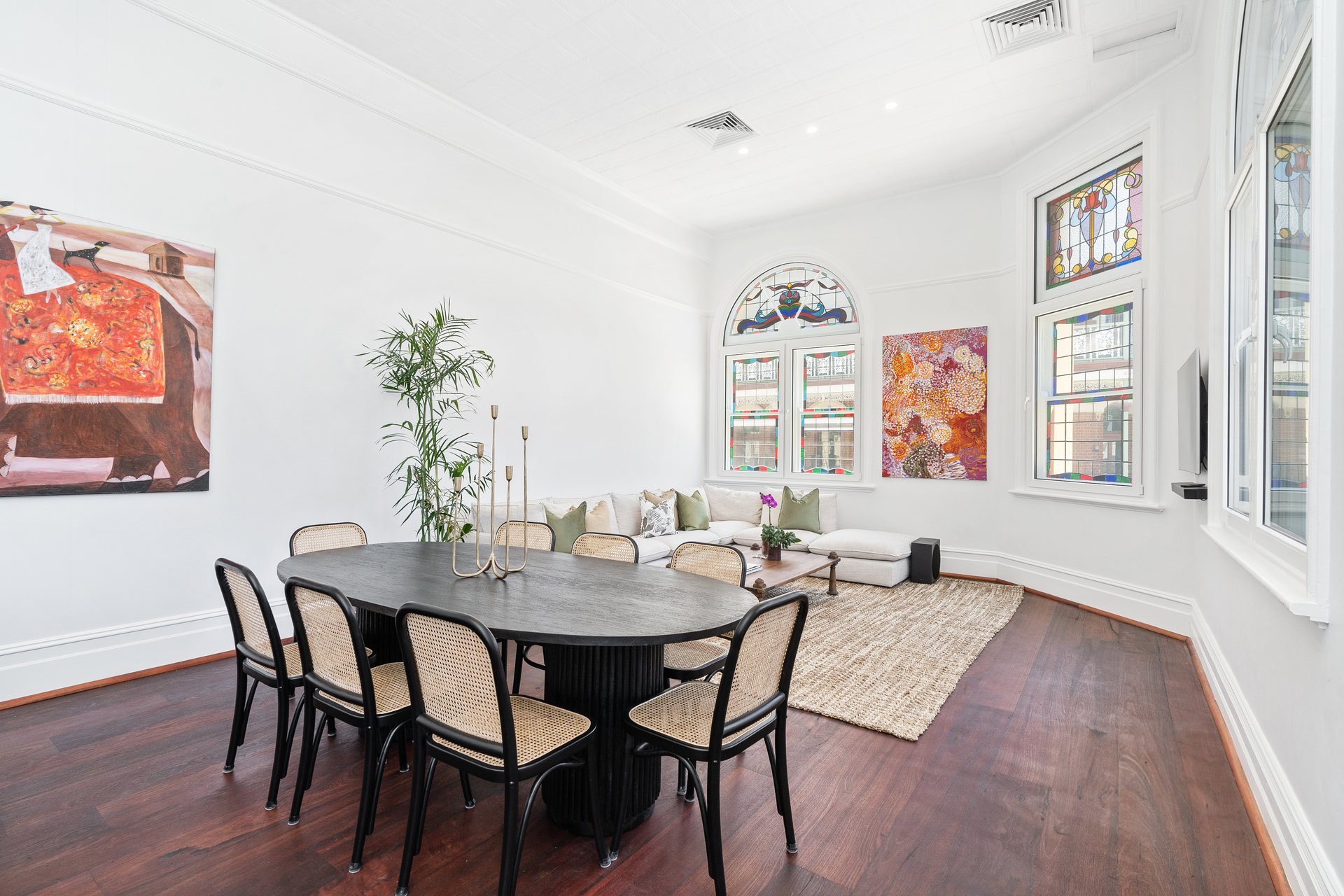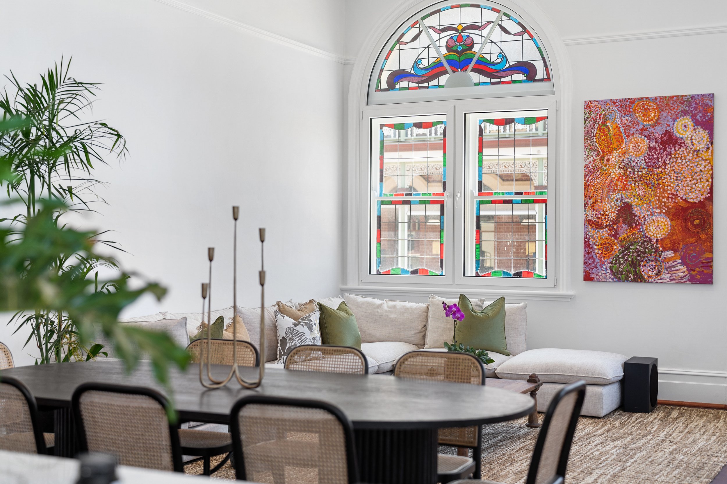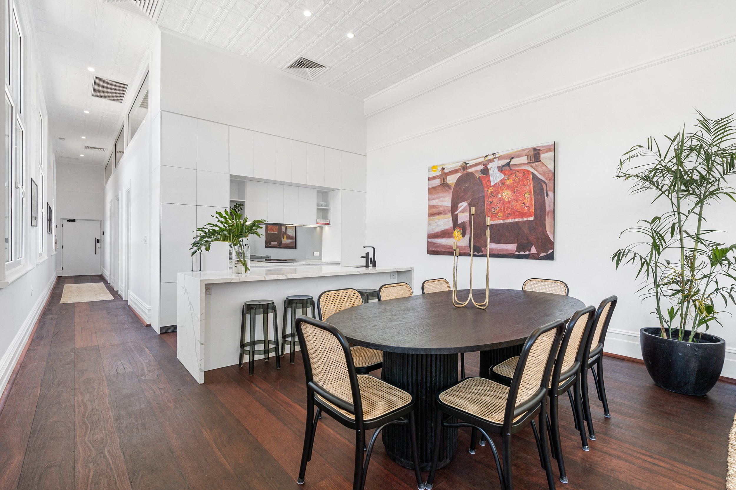 This gorgeous Fremantle home features stunning heritage jarrah floors that add warmth and character to the interior. The rich, deep hues of the jarrah enhance the overall aesthetic, creating a beautiful contrast with the modern design elements.