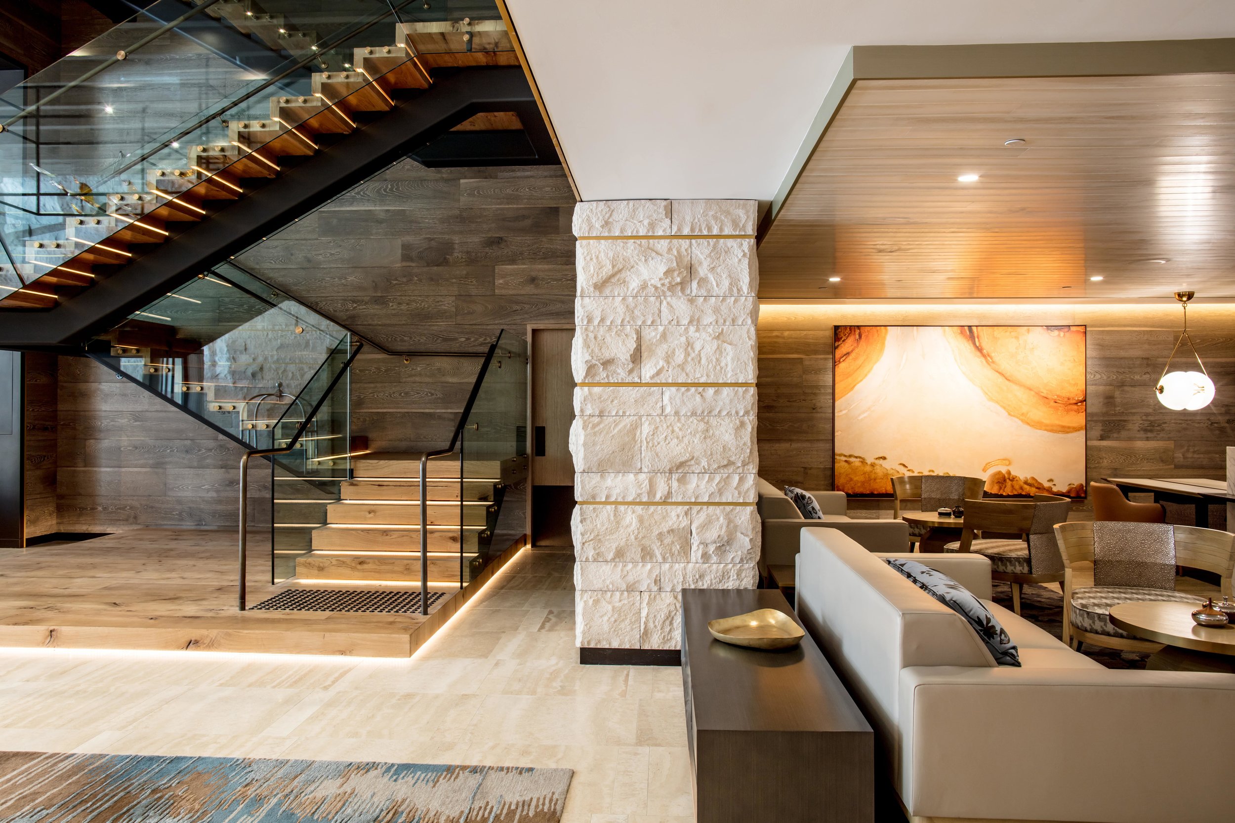 The InterContinental Hotel in Perth features stunning interior architecture that seamlessly blends modern elegance with classic sophistication, creating a refined atmosphere for guests.