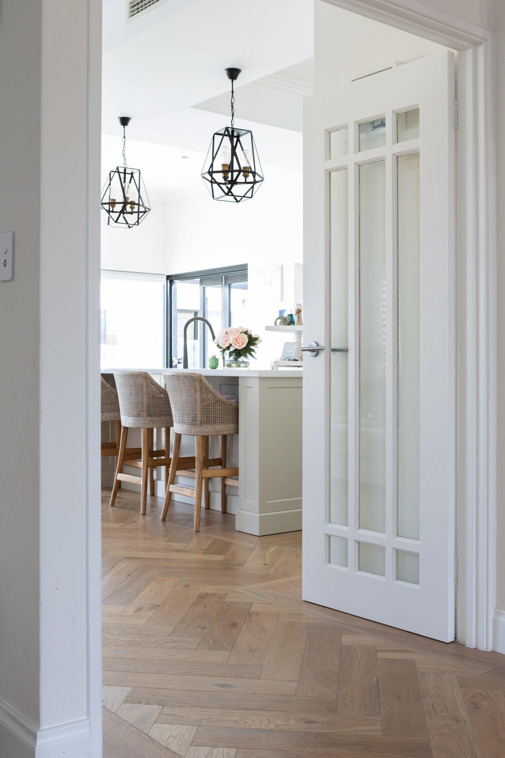 This coastal inspired gem in Mindarie uses Vermont Herringbone flooring from our Signature Oak Range with matching plank borders and stairs tying it all together.