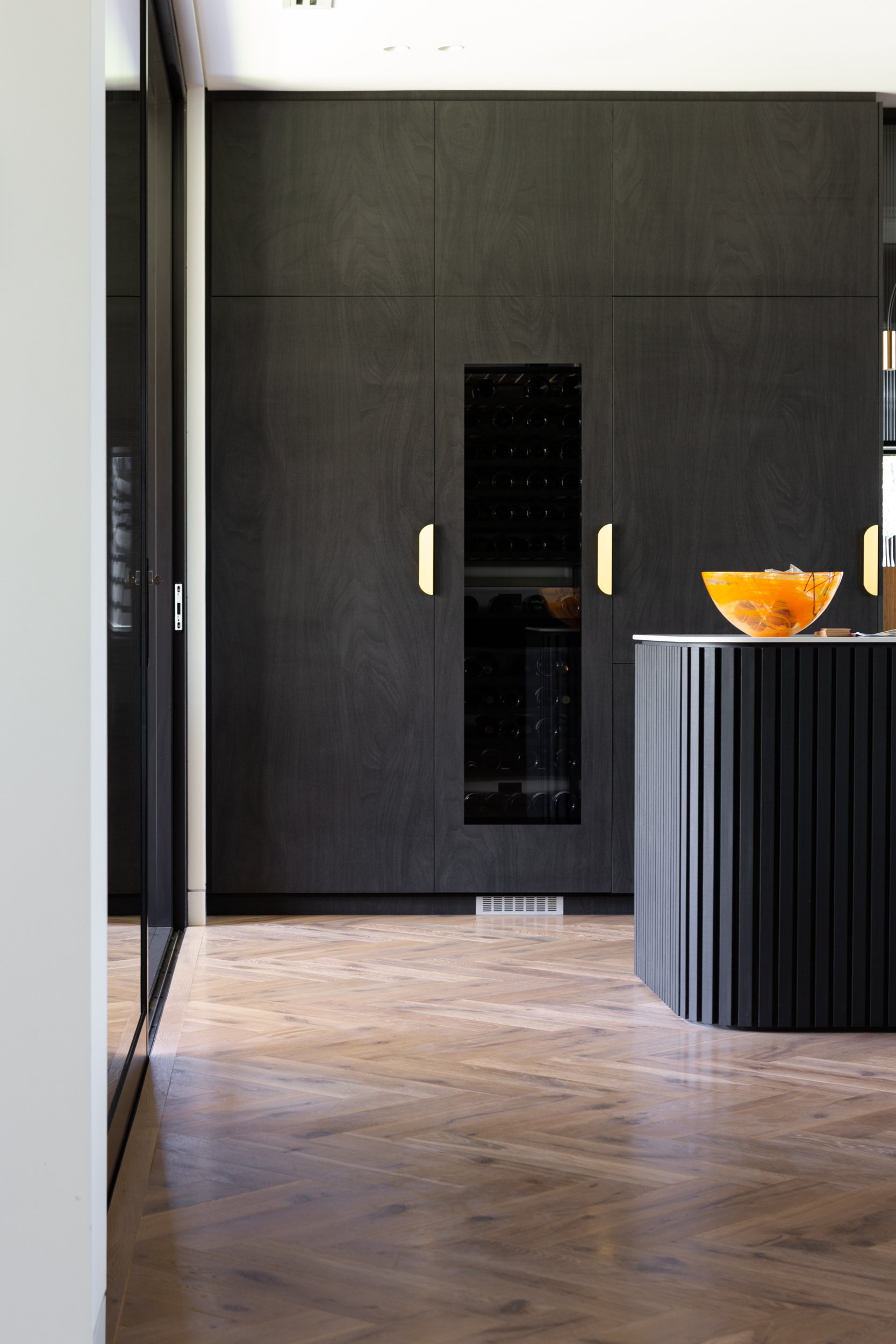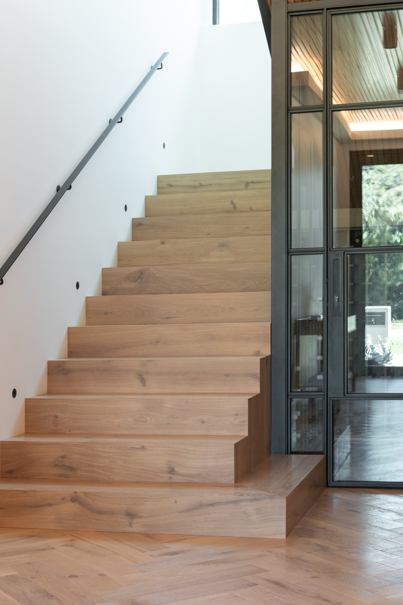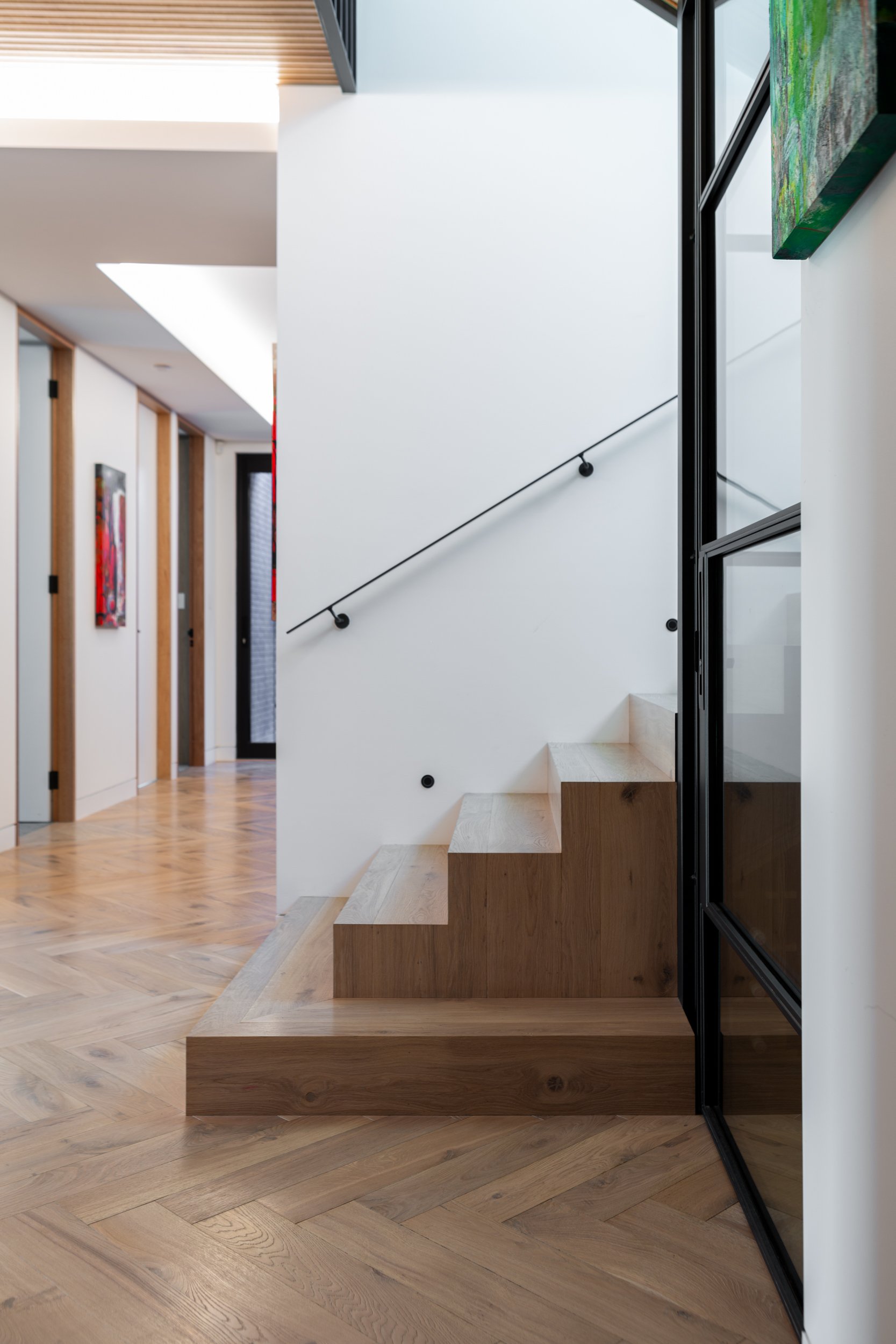 Ginger boards in a classic grade create a dynamic statement when laid in a herringbone pattern, creating movement and flow through this North Beach home.