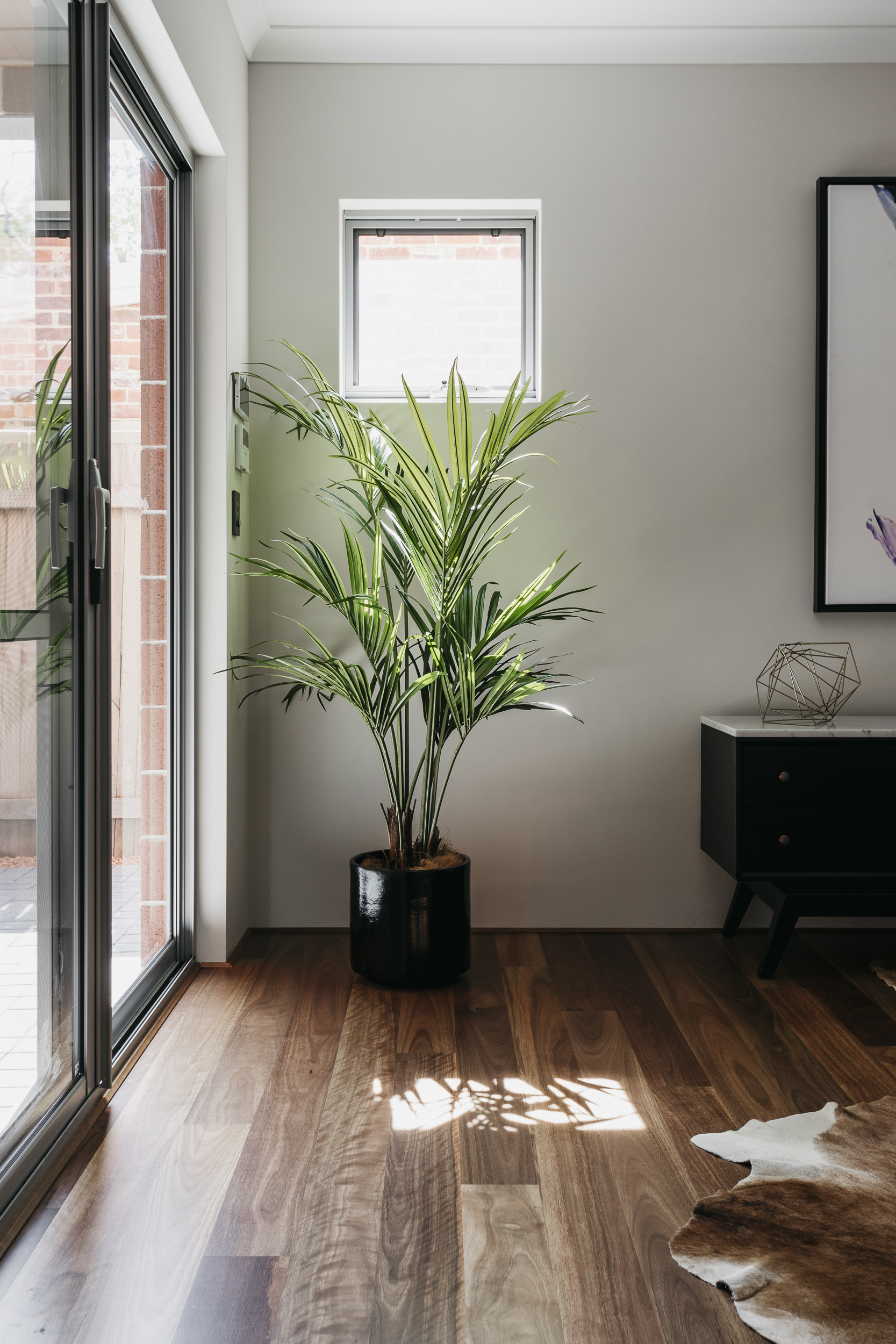 With its stunning mix of colours and grain patterns, Spotted Gum creates warm and inviting spaces throughout this Shenton Park home.
