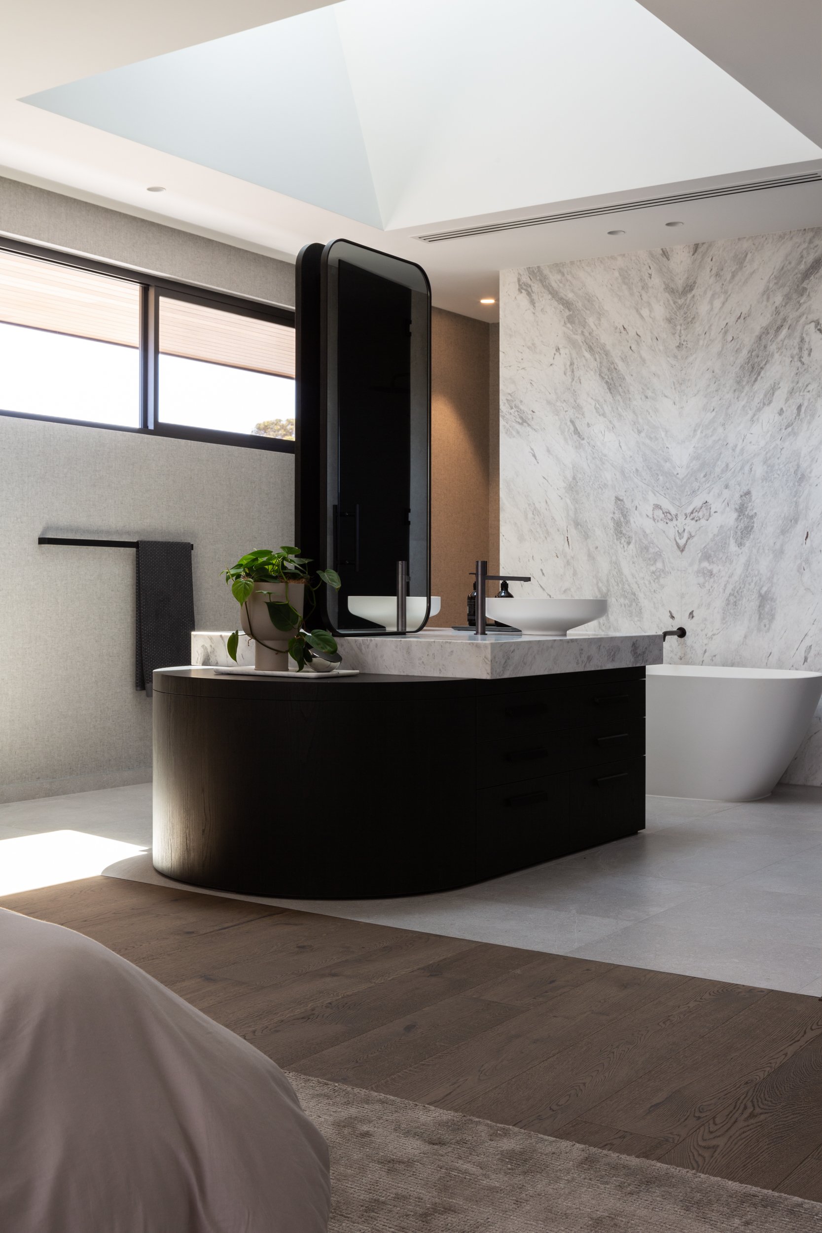 This South Perth residence exemplifies contemporary elegance and functional design. Premium materials and stylish fixtures enhance the home’s sophistication, including Coswick Series engineered oak floorboards in the made to order colour Marseille.