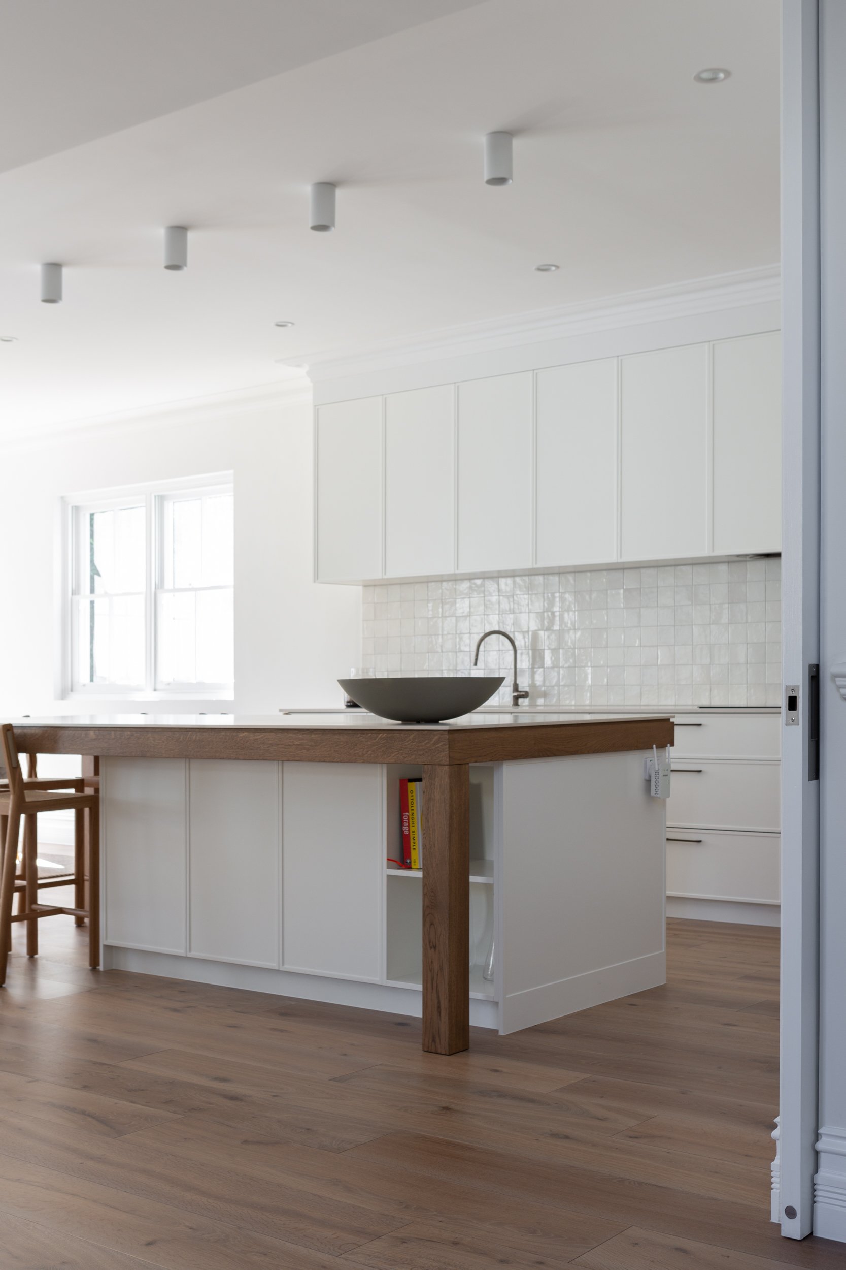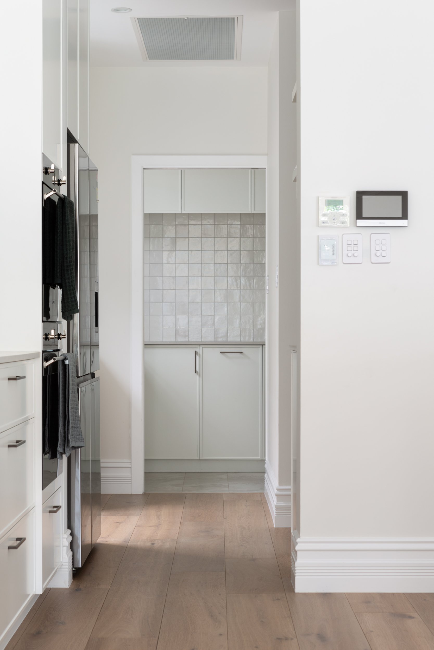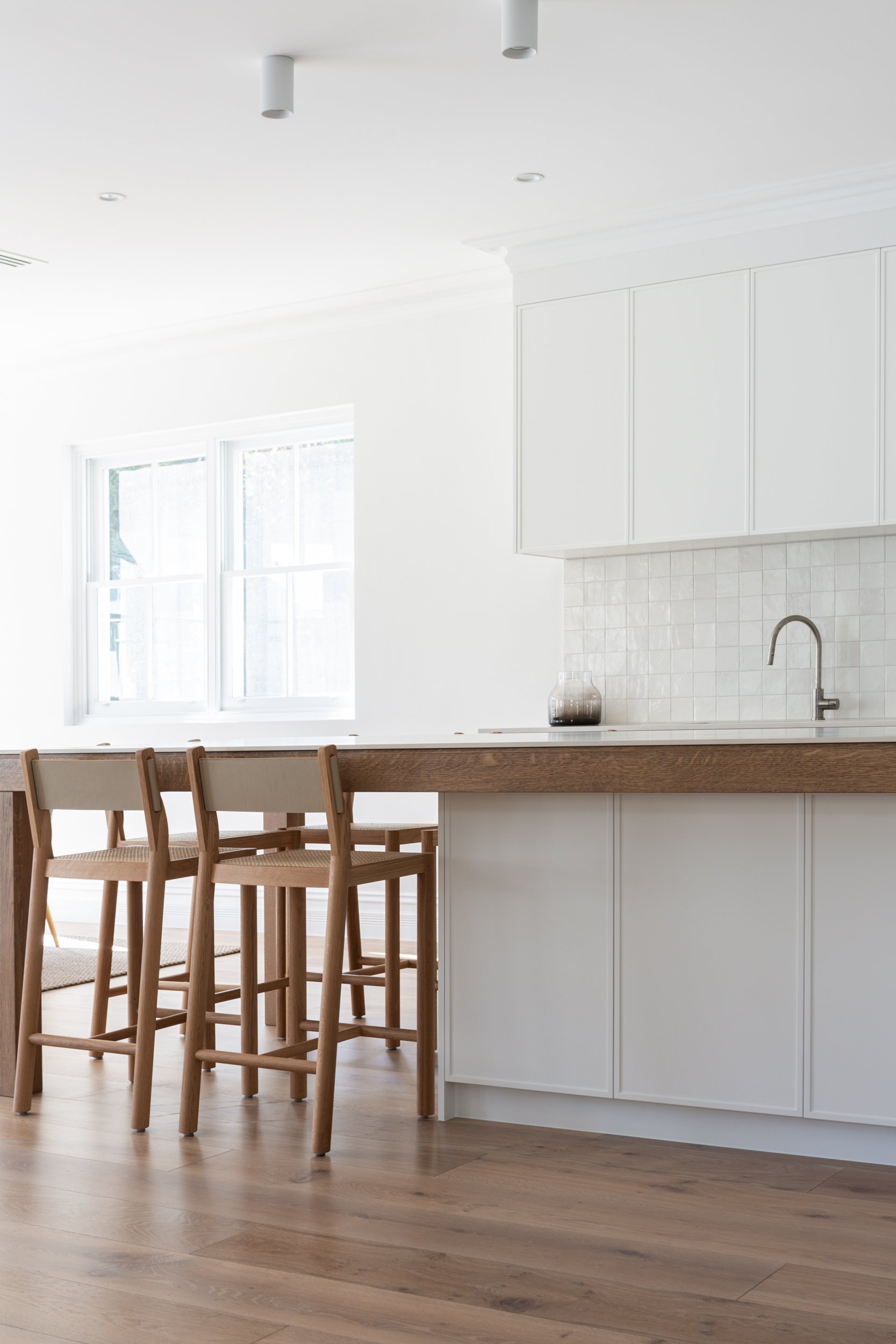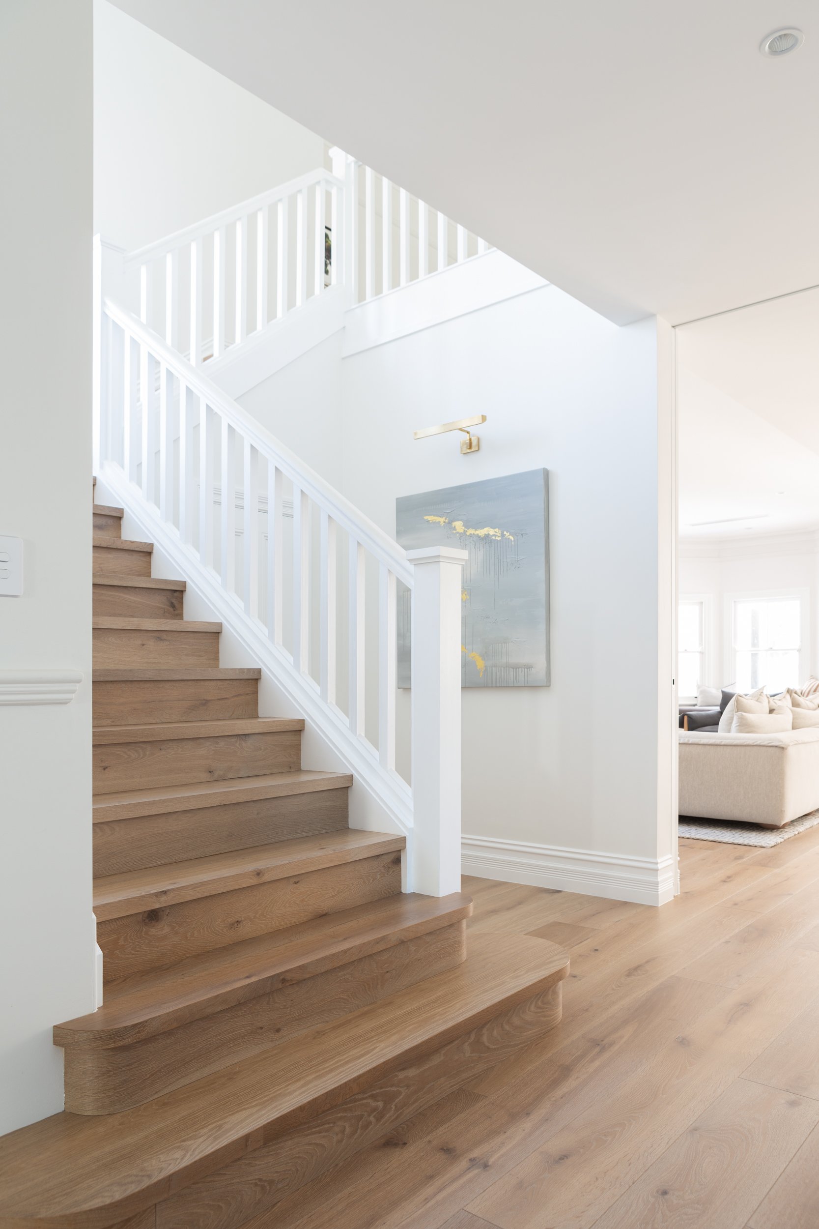 Warm whites, linen and and Vermont flooring complement the coastal aesthetic in this Swanbourne home.