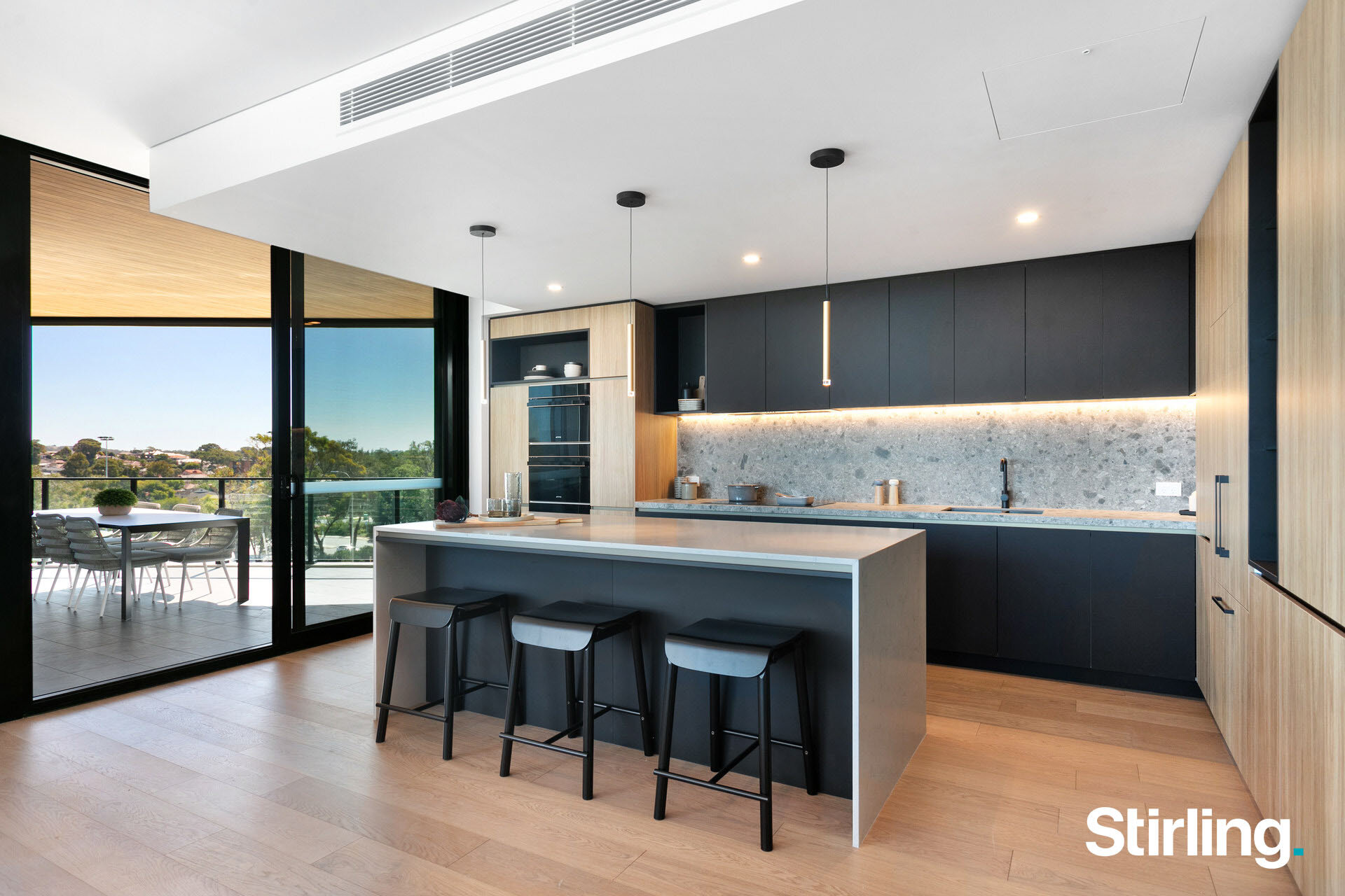 The design of Treehouse Apartments features a unique, nature-inspired aesthetic that incorporates organic shapes and natural materials, creating a harmonious blend of modern living with its lush, surrounding environment. Flooring from the Hamptons Range was chosen for its cost-effective and high quality finish, this was created in a custom stain.