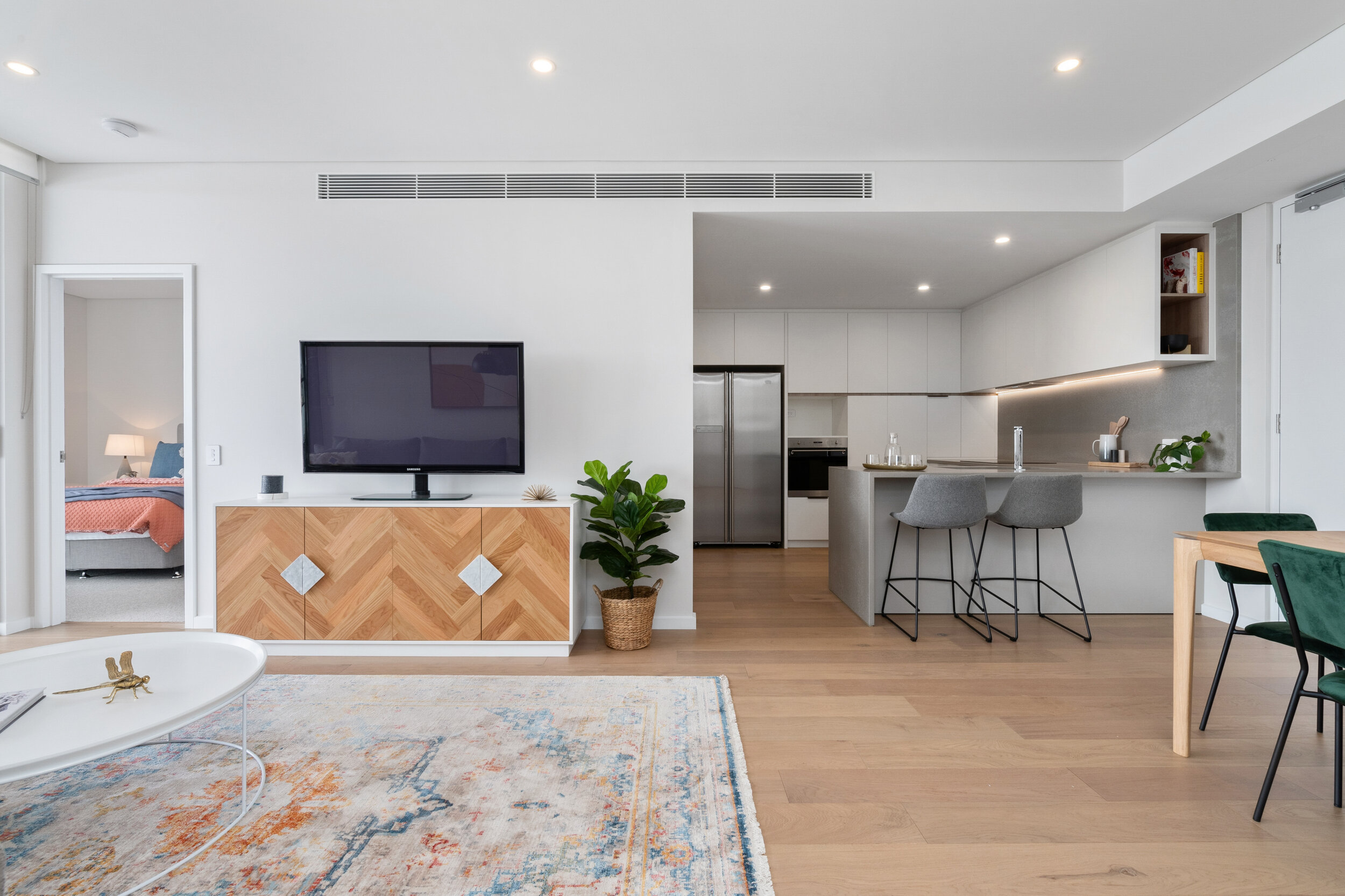 Vic Quarter by Hillam showcases a vibrant blend of contemporary architecture and community-focused design, creating dynamic spaces that foster connection and engagement. The interiors are warm and inviting yet neutral, thanks to the Sandstorm floorboards from our Signature Oak Range.